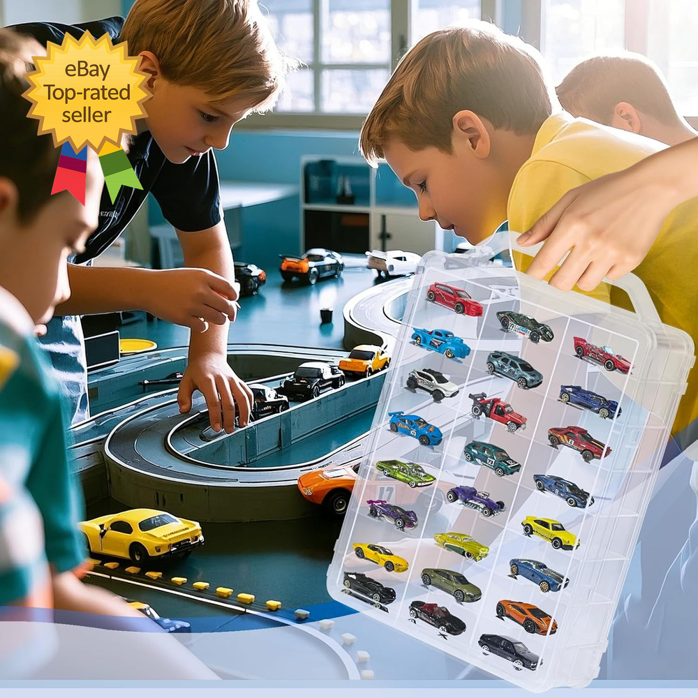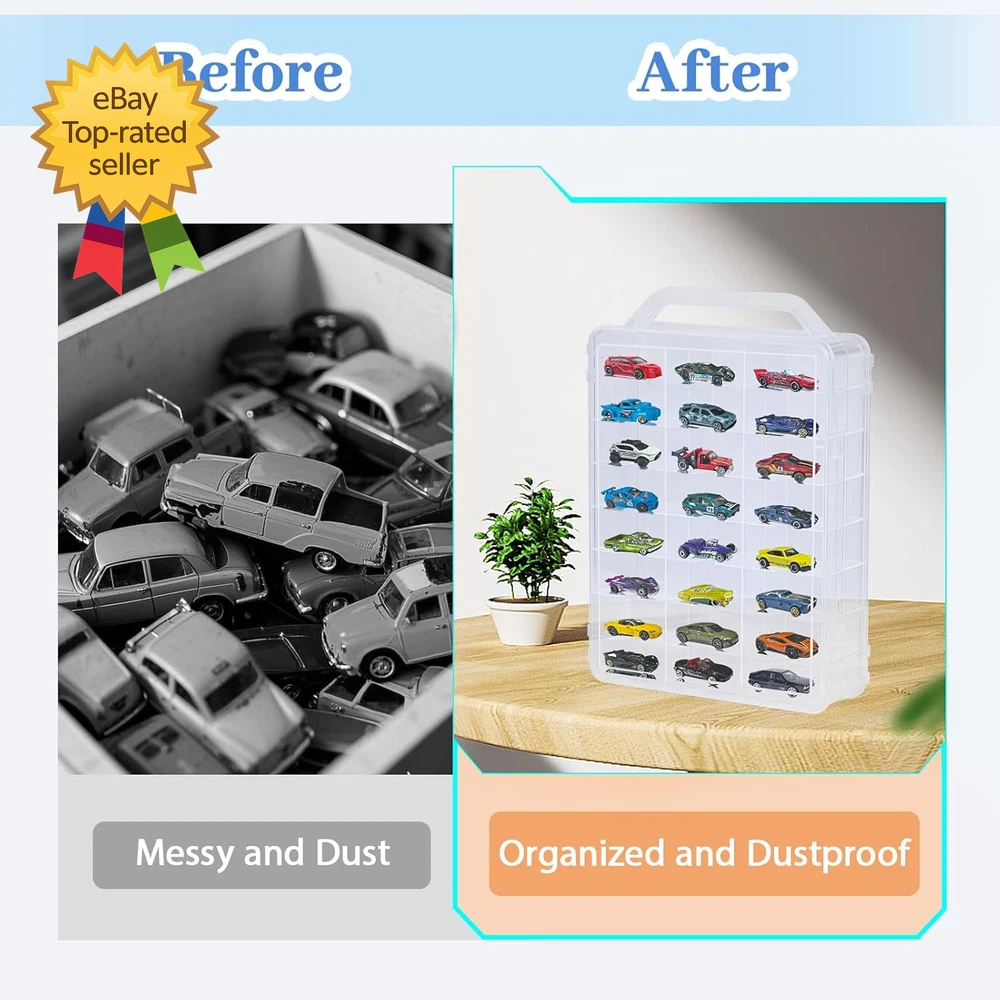 Store New Arrivals Add to Favorite View Feedback Contact Double Sided Storage Case for Hot Wheels Storage with Carrying HandlePortable Description Item Package Quantity 1 Color Clear Material Plastic Water Resistance Level Not Water Resistant Product Dimensions 3.15"L x 1.45"W x 1.5"H Item Weight 2 pounds Batteries required No Shape Rectangular Opening Mechanism Lift-Off Lid Recommended Uses For Product For Toys Special Feature Portable Fabric Type Plastic Included Components Shade included Plastic Storage Case for Hot Wheels Storage: This carry storage case designed with a carrying handle, making it easy to storage and carry for 1/64 scale toy cars. It keeps your collection stays organized and portable wherever you go Generous Storage Capacity: This portable storage case has 46 slots, and two storage cases will have a total of 92 slots, with each measuring 3.15”(L)x1.45”(W)x1.5”(H). Two long compartments (6.3”L) fit longer vehicles like trucks, or two small car, holding up to 46-48 cars in total Double-Sided and Easy Access: The clear carrying storage case double-sided design allows you to have more storage for 1/64 scale Hot Wheels Matchbox cars, and they can be easily accessed from both sides when needed Durable and Transparent Plastic: Made from high-quality plastic, this toy cars storage case is both strong and durable. The transparent design allows you to quickly view and access your cars, making it easy to find you need toy cars ABOUT US We offer the best prices around on high quality products. Our E-store includes media such as books, movies, music and games while offering electronics, toys, sporting apparel, clothing, tools, general home, garden items and more. SHIPPING We are always working hard to ensure your package arrives as soon as possible. Please understand that some factors like weather, high postal traffic, and the performance of shipping companies are outside of our control. We offer free shipping to the lower 48 states and ship within 2 business days of payment, usually sooner. We do not accept P.O. Boxes. Please provide a physical address. For shipping outside of the continental USA, we only use eBay's Global Shipping Program.The item is shipped to KY and then sent to the rest of the world. International customers are responsible for all duties and taxes. Continue to check out in order to calculate costs for shipping the item to your country. Messages regarding eBay's Global Shipping Program MUST be directed at eBay EXCLUSIVELY. RETURNS We offer a 30-Day Return Policy on items which you are not completely satisfied with. You have the option for a full-refund or an exchange of the item. No returns are available on items shipped outside of the USA. PAYMENT We accept PayPal. CONTACT US This page content is yet to come Please ad us to your favorite seller and visit again later Thank You CUSTOMER SATISFACTION We try our very best to make sure every customer is completely satisfied. If there's a problem, message us! We're happy to help.