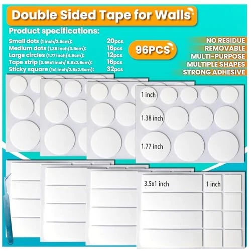 Double Sided Tape for Walls, Picture Hanging Strips Circle and strips
