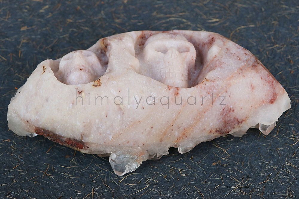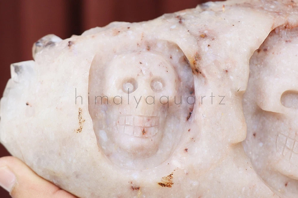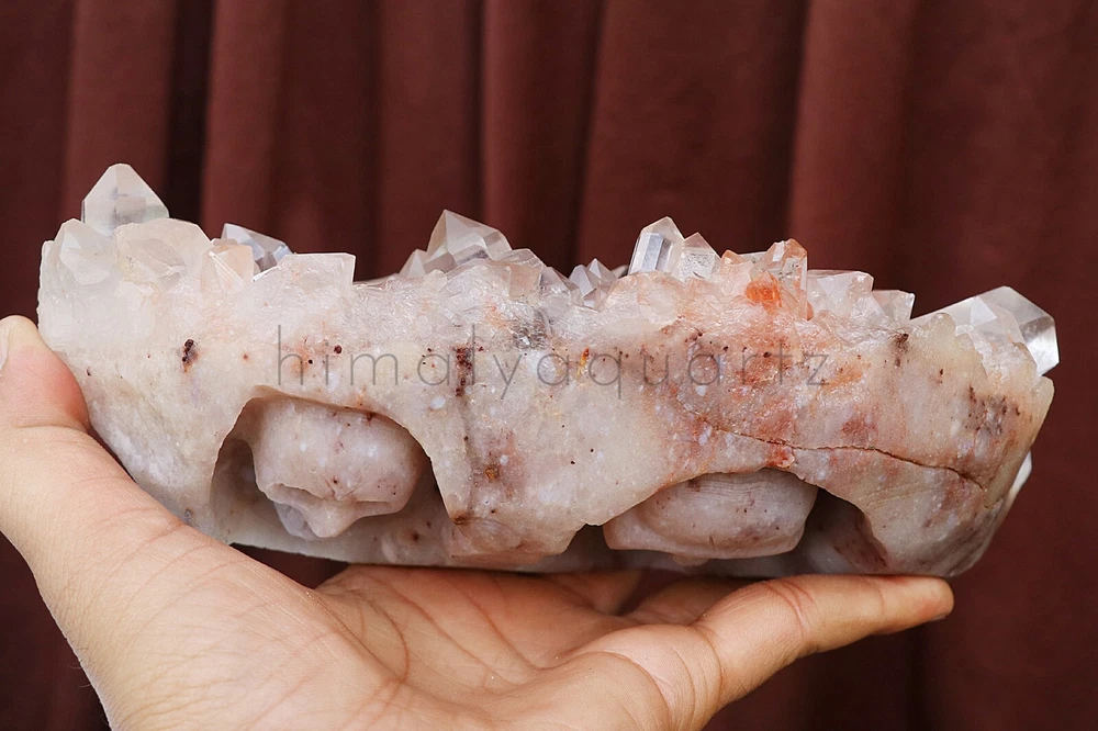 This stunning Double Skull Himalayan Samadhi Quartz is absolutely mesmerizing! The natural pink and white hues give it a magical, ethereal glow, and the intricate skull carvings add a unique spiritual touch. Holding it, I immediately felt a deep sense of calm and connectionโlike it carries ancient wisdom. The energy is powerful yet soothing, perfect for meditation or healing work. The raw, natural texture keeps its authentic charm, and the weight feels substantial and grounding. A truly special piece that radiates positive vibesโhighly recommend for crystal lovers!