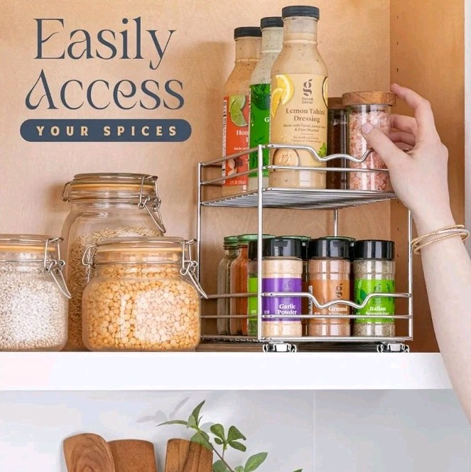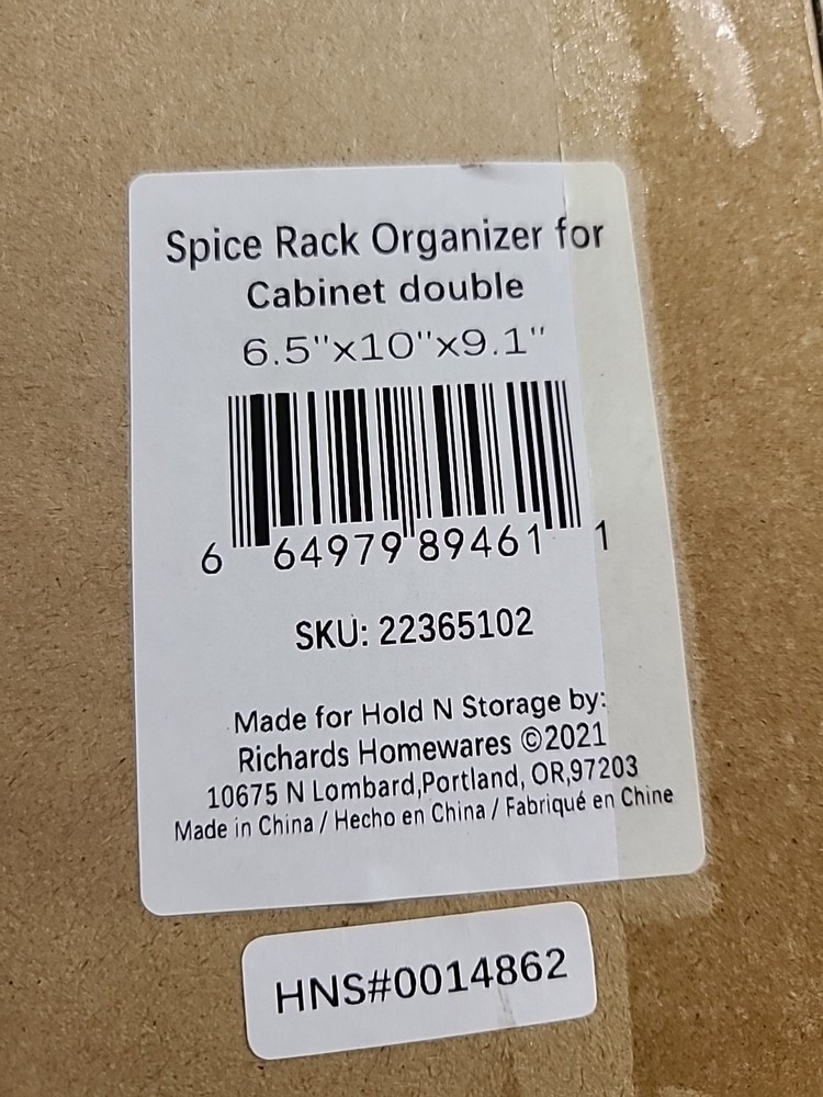 Double Spice Rack Organizer For Cabinet 6.5" x 10" x 9.1" New unopened box.