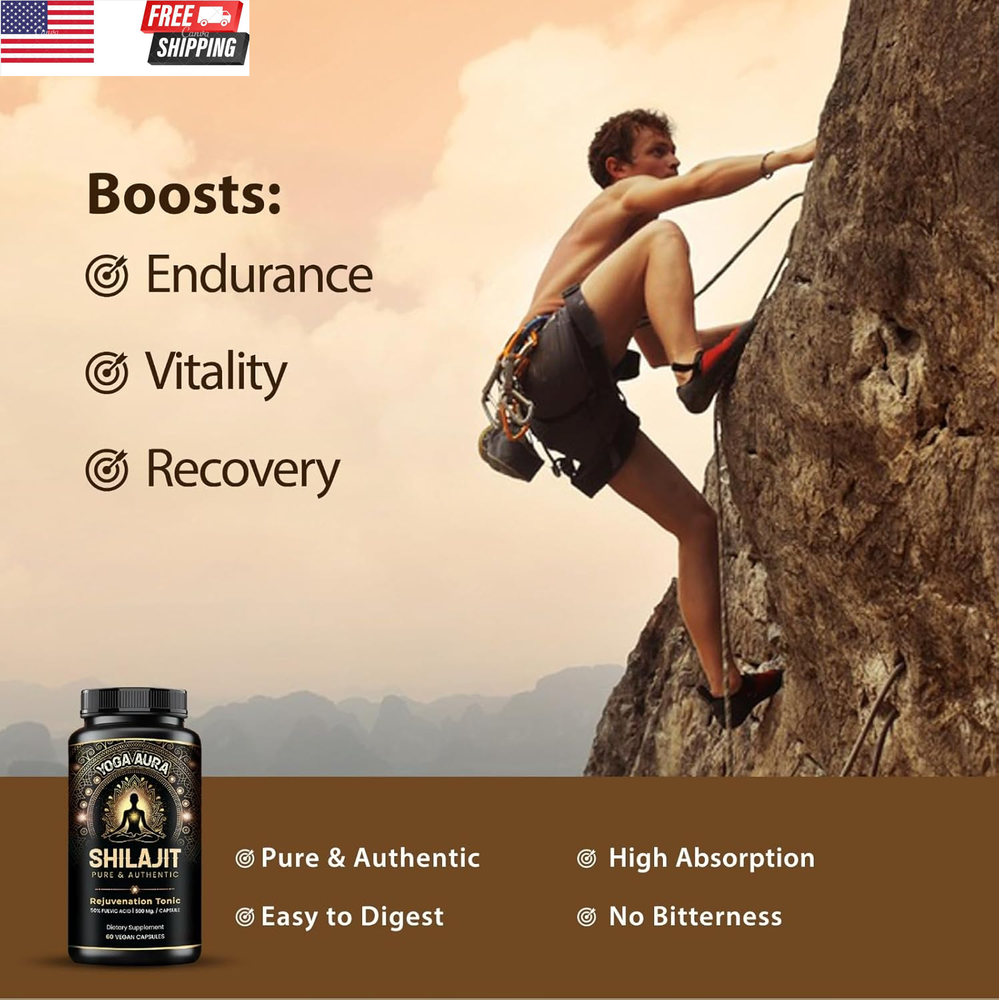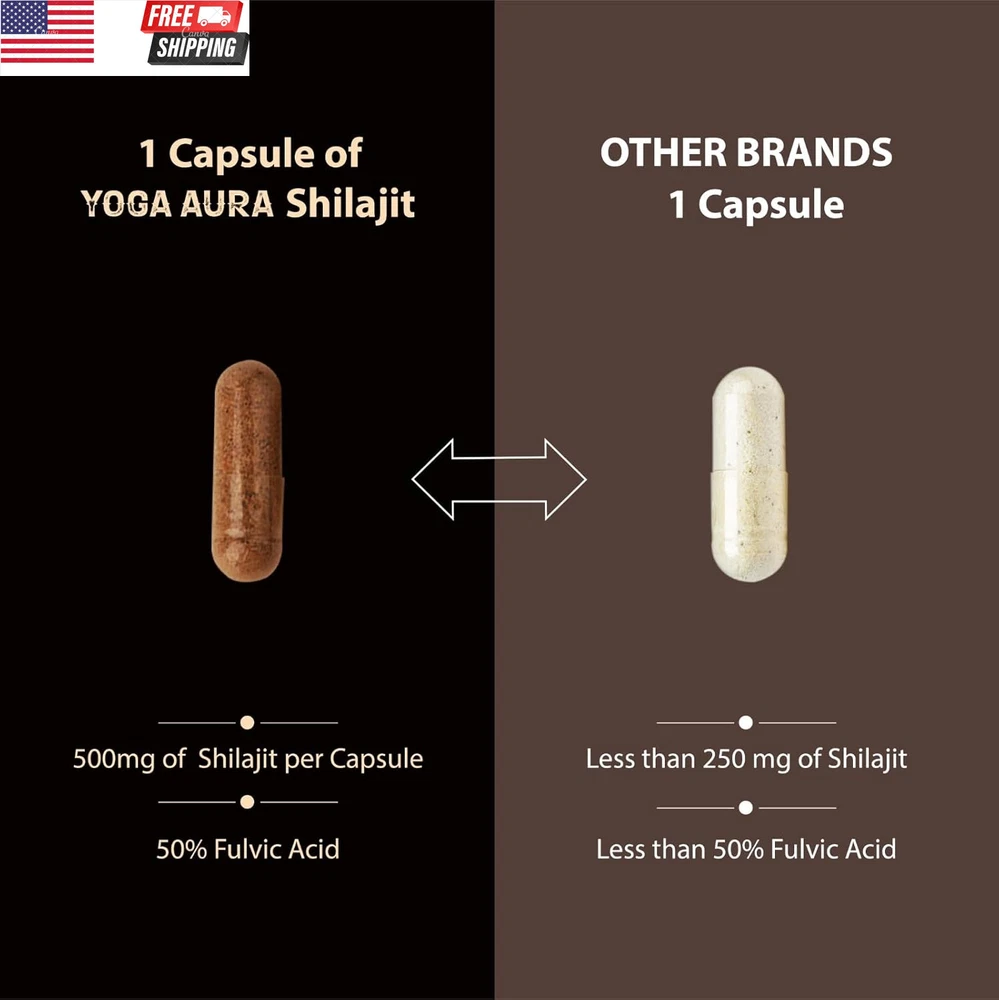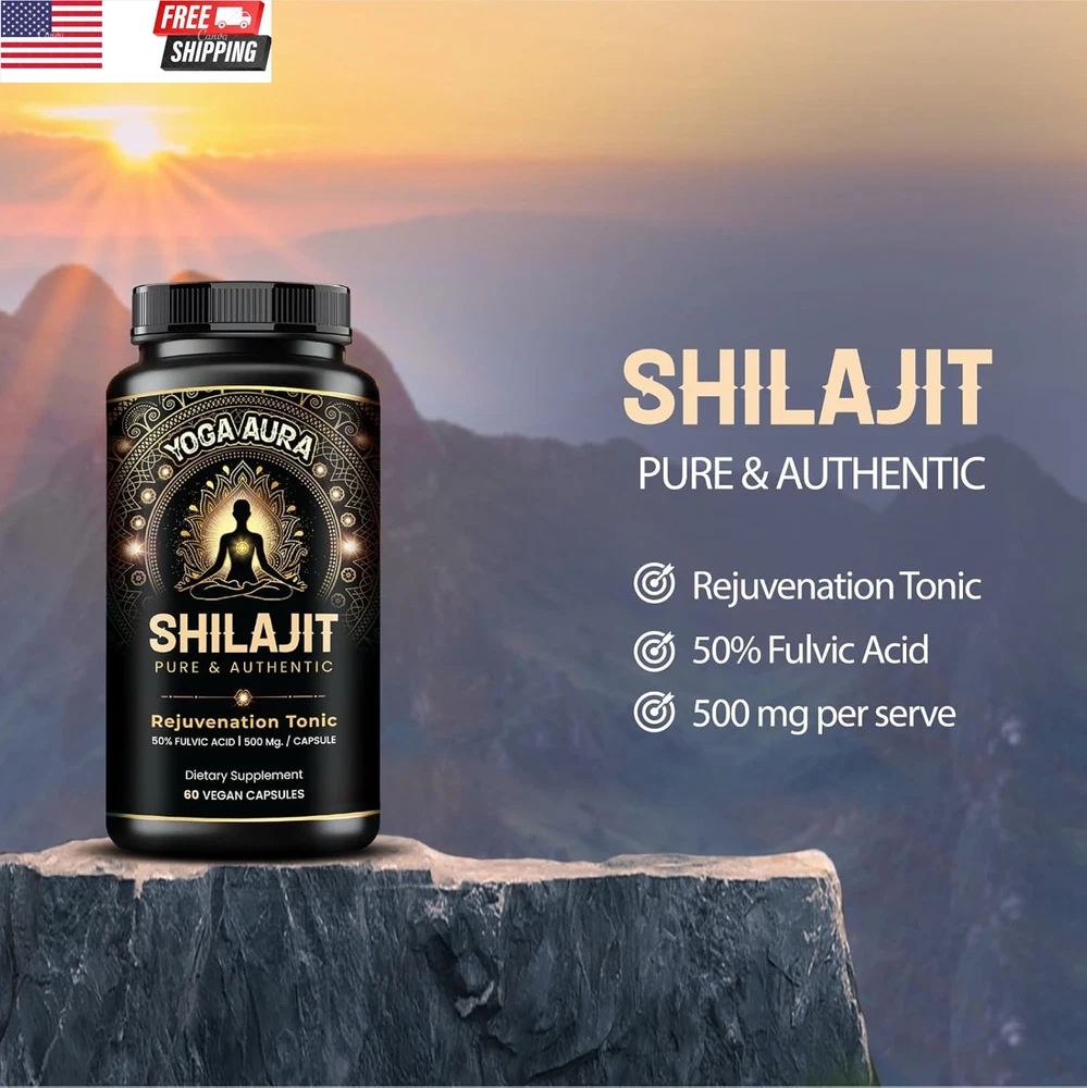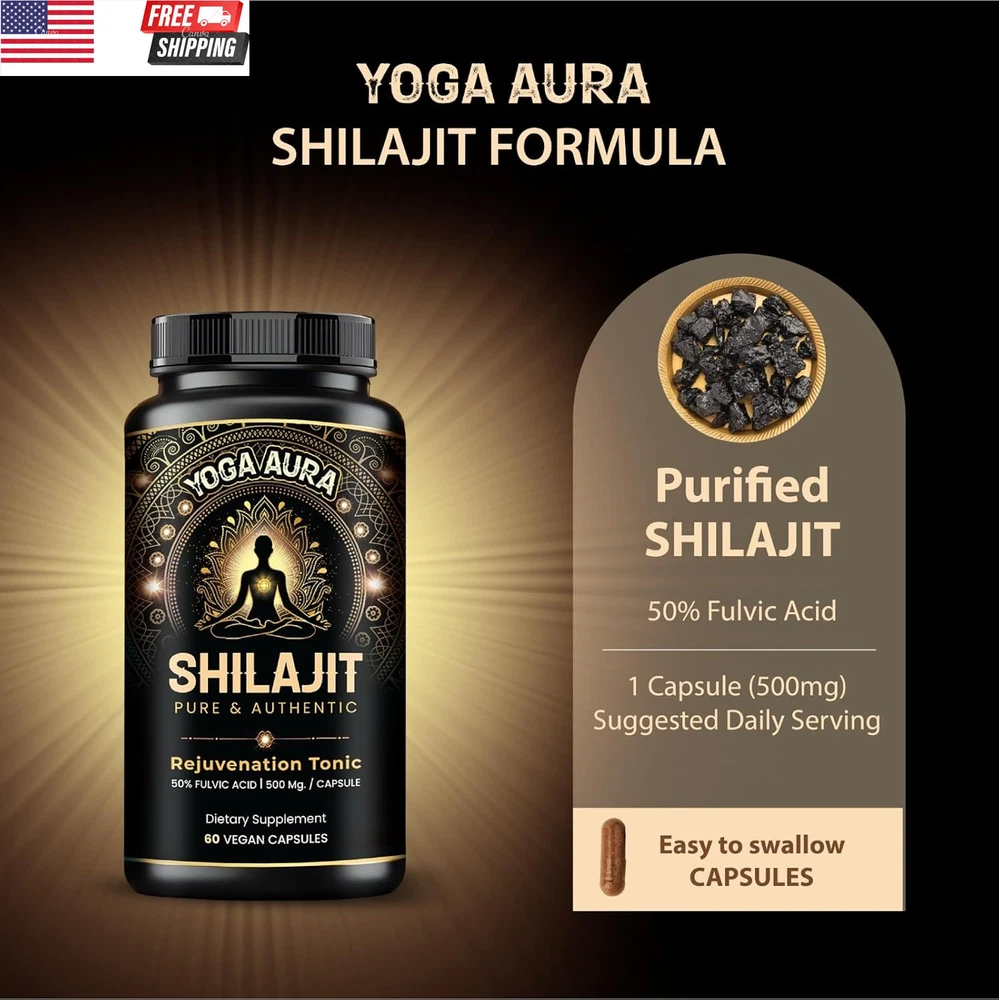 Double Strength Organic Ultra SHILAJIT 500Mg per Capsule|Pure Himalayan Shilajit Resin Extract|Max Potency Vegan Lab Tested|85+ Trace Minerals Fulvic Acid| Natural Energy, Stamina|Better Alt to Resin ORGANIC ULTRA PREMIUM PURE HIMALAYAN SHILAJIT – At Yoga Aura, we embrace the power of ancient wellness. Our organic Shilajit supplement is derived from rare, gold-grade Himalayan sources and standardized to 50% fulvic acid. Rich in 85+ trace minerals and fulvic acid, each capsule is a potent extract crafted to support energy, immunity, and overall vitality—rooted in Ayurveda and made for your modern lifestyle. ENERGY, STAMINA & IMMUNITY SUPPORT – Inspired by the balance and endurance found through yoga, our organic Shilajit capsules are designed to support your everyday vitality. This natural Himalayan extract works as a supplement for both men and women—supporting immune health, energy, stamina and resilience, so you feel aligned and empowered throughout your day. HIGH-POTENCY, PURE EXTRACT – Yoga Aura’s Pure & Ultra Shilajit supplement delivers a clean, effective dose with 500 mg of organic Himalayan extract per capsule. Carefully formulated for maximum absorption and potency, our capsules help unlock mental clarity, energy, and inner strength—bringing ancient Ayurvedic wisdom into your daily self-care. HOLISTIC WELLNESS SUPPORT – More than a supplement, Yoga Aura’s organic Shilajit is a daily ritual in a capsule. From supporting bone health and natural testosterone levels to aiding in altitude adjustment, this Himalayan extract brings full-body wellness—energy, immunity, and balance—in one powerful plant-based solution. PURE EXCELLENCE, NO COMPROMISE – At Yoga Aura, purity is sacred. Our organic Shilajit capsules are made using a non-chemical extraction process, ensuring a clean and effective Himalayan supplement with no fillers or hidden ingredients. Each bottle contains 60 capsules—a 2-month supply of authentic wellness support in its purest form. 3rd PARTY LAB TESTED, RESPONSIBLY MADE, QUALITY ASSURED – Our Natural Shilajit extract is manufactured in a USA-based, GMP-certified facility. Every capsule is third-party tested for safety and purity, free from additives or preservatives. With Yoga Aura, you receive an organic Himalayan supplement you can trust—crafted for mindful living and holistic healing. BETTER ALTERNATIVE TO RESIN - Unlike sticky resin or sugar-filled gummies, our capsules offer a clean, convenient, and mess-free way to experience Shilajit—without compromising potency or purity. Each capsule delivers a precise 500 mg dose of high-strength Himalayan extract, formulated for maximum absorption and long-lasting benefits. Product Description Yoga Aura Pure Himalayan Shilajit Supplement with 85+ Trace Minerals and 50% Fulvic Acid SHILAJIT FOR MEN SHILAJIT FOR WOMEN Item Package Quantity 1 Product Dimensions 1.97 x 1.97 x 4.13 inches; 2.12 ounces Package Information Bottle Item Form Capsule Shipping Fast shipping is very important for us. Our standard US shipping service is FREE. Your order will be shipped within 2-3 business days upon full payment received. Your order will be delivered within 2-3 business days after the handling time. We only ship to the confirmed PayPal address. We reserve the right to cancel any order for any reason at any time. We are not responsible for undeliverable addresses. Returns and payment We offer a 30 days return policy from checkout winning date. We allow only PayPal as payment method FeedBack Your feedback very important to us, after you get your package and you are satisfied with our service please leave us positive feedback If you have any problem with your order / any questions please before leave any type of feedback For any questions, using eBay contact system Please visit our eBay store to check out other items for sale! Thank you for shopping at our store.