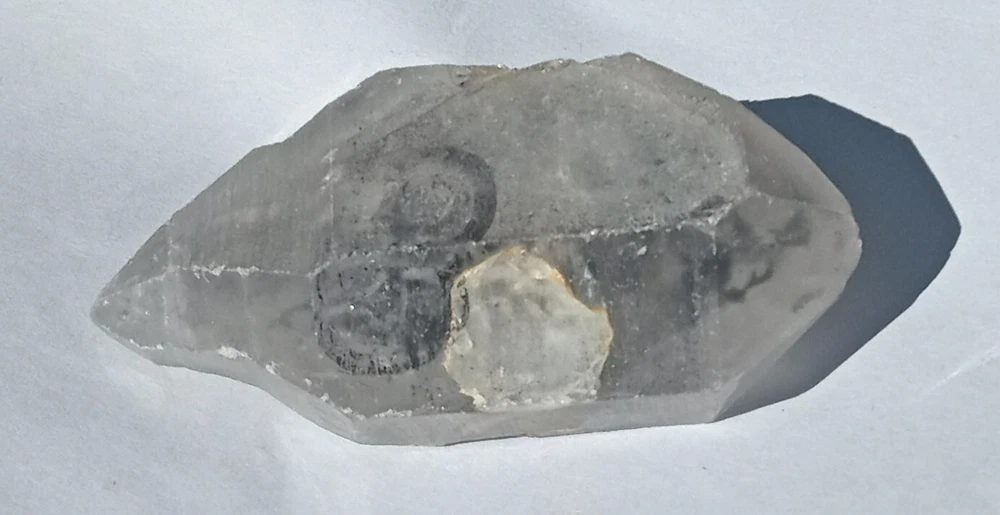 Double Terminated Enhydro Twin Bubble Quartz Crystal Trapped Water & Carbon Measures 3 x 1.6 x 1 in. (75 x 40 x 26mm) Weighs 100 grams