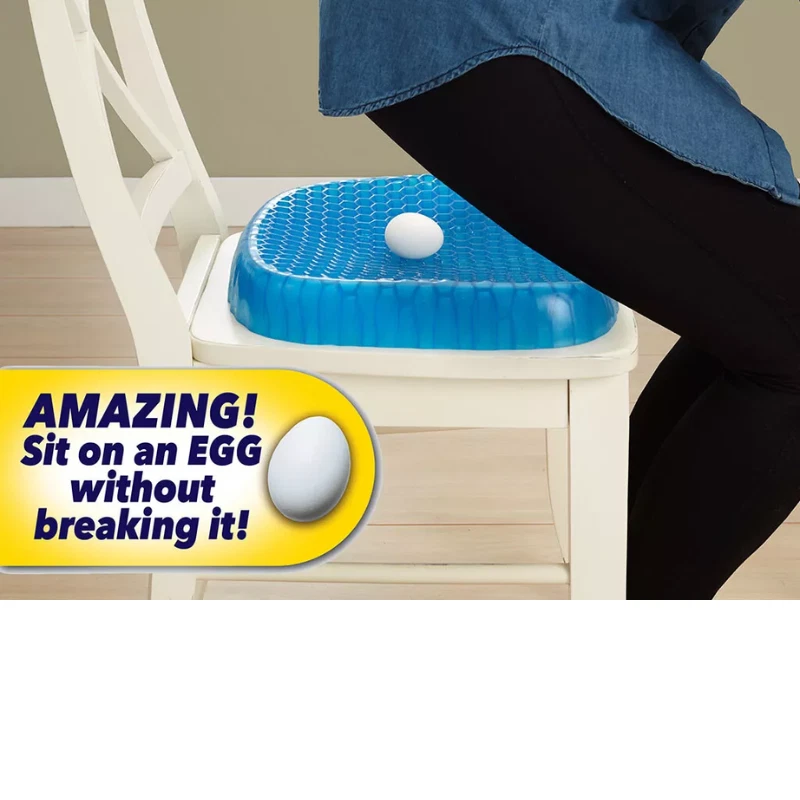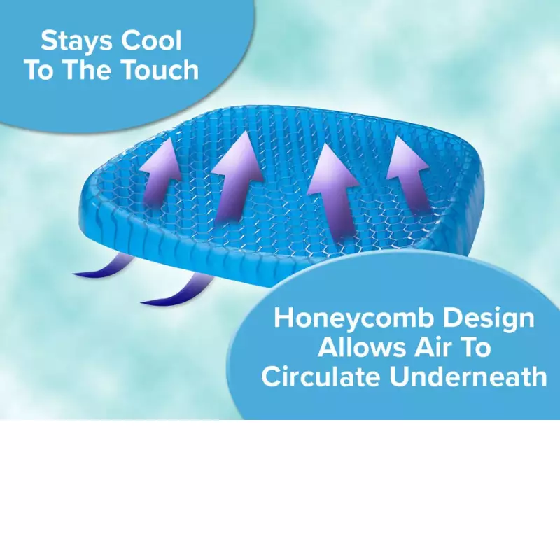 mGel Double Thick Gel Seat Cushion for Pain Relief Experience ultimate comfort and support with the mGel Double Thick Gel Seat Cushion, designed to relieve pressure and provide pain relief for various seating needs. Perfect for use in the office, car, wheelchair, or home, this cushion combines an ergonomic honeycomb design with cooling and breathable features to ensure your comfort all day long. Key Features Honeycomb Design: Over 500 balanced pressure and flexible honeycomb grids effectively distribute weight, perfectly fitting the buttocks curve for maximum comfort and support. Cooling and Breathable: The unique gel honeycomb structure reduces heat transfer, increases airflow, and keeps you cool even during extended sitting sessions. Relieves Pain: Helps alleviate pain associated with tailbone issues, lumbar strain, sciatica, and degenerative disc disease. Prevents fatigue and muscle compression, promoting better relaxation and posture. Non-Slip Cover: Comes with a removable magnetite anti-slip cloth cover with a zipper design for easy washing. The gel cushion itself can also be washed as needed. Wide Application: Suitable for home, office, car, travel, stadiums, and wheelchairs. Includes a 45-day money-back guarantee and an 18-month warranty for peace of mind. Product Specifications Feature Details Color Blue Material Gel Cushion & Polyester Cover Dimensions 15.6" L x 15" W Special Features Pain Relief, Breathable Recommended Uses Office Chair, Car Seat, Wheelchair, Travel Why Choose mGel Gel Seat Cushion? The mGel Gel Seat Cushion is not just another cushion. Its innovative honeycomb design and high-quality materials make it stand out as the best solution for pressure relief and enhanced sitting comfort. Whether you're working, driving, or relaxing at home, this cushion provides the perfect balance of support and breathability. Package Includes: 1 x mGel Double Thick Gel Seat Cushion 1 x Magnetite Anti-Slip Cloth Cover Product Images