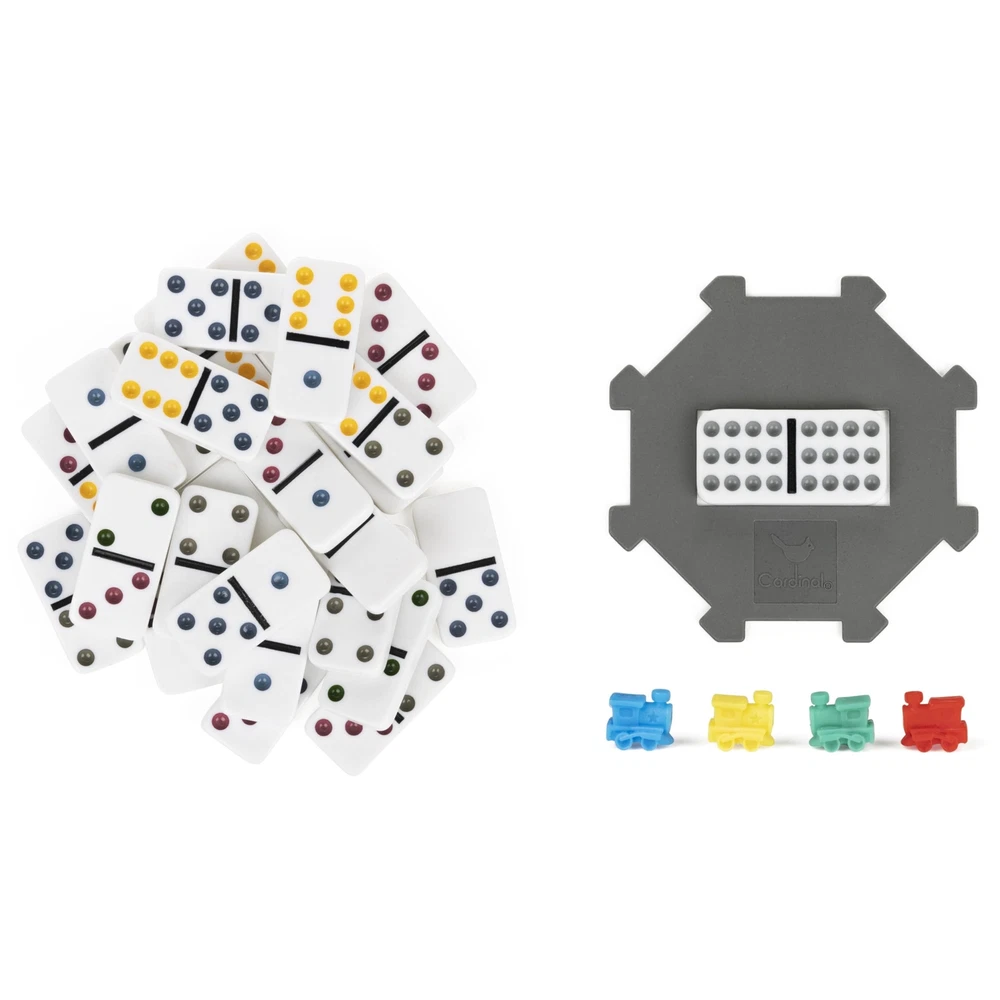 Bring some old-fashioned family fun to game night with this high quality Dominoes set. Double Twelve Dominoes is perfect for beginners and experts. The starter piece enhances gameplay while the bright colored dots make gameplay easier. Train enthusiasts will love the brightly-colored toy trains! This Double Twelve Dominoes set includes 91 durable, color dot, ivory-colored dominoes that stack neatly into a durable storage tin, a starter piece, and 4 plastic trains. Learn to play different variations with the included instructions. CLASSIC GAME FOR EVERYONE: This set comes with bright color-dot dominoes, allowing for easier gameplay for kids and people with vision issues. Comes with instructions for gameplay variations EDUCATIONAL AND FUN: This set of Double-12 Dominoes teaches kids simple matching and math skills. Perfect game for beginners and the whole family Train enthusiasts will love the brightly-colored toy trains DURABLE STORAGE TIN: Includes sturdy storage tin to keep all of your pieces organized. High quality color dot dominoes are built to last for years. Recommended for 1 or more players, ages 8+ FAMILY GAME NIGHT: Make memories with board games for kids 4-6, board games for kids 6-8 & board games for kids 8-12 Take the fun outside with camping games & outdoor games for adults and family SPIN MASTER TOYS & GAMES: Looking for kids games, yard games & card games for grown ups, kids or teen? Shop everything from family game night, travel games, puzzles for adults & family games Includes: 91 Dominoes, 4 Plastic Trains, Starter Piece, Instructions Covered by the Spin Master Care Commitment. See below for full details