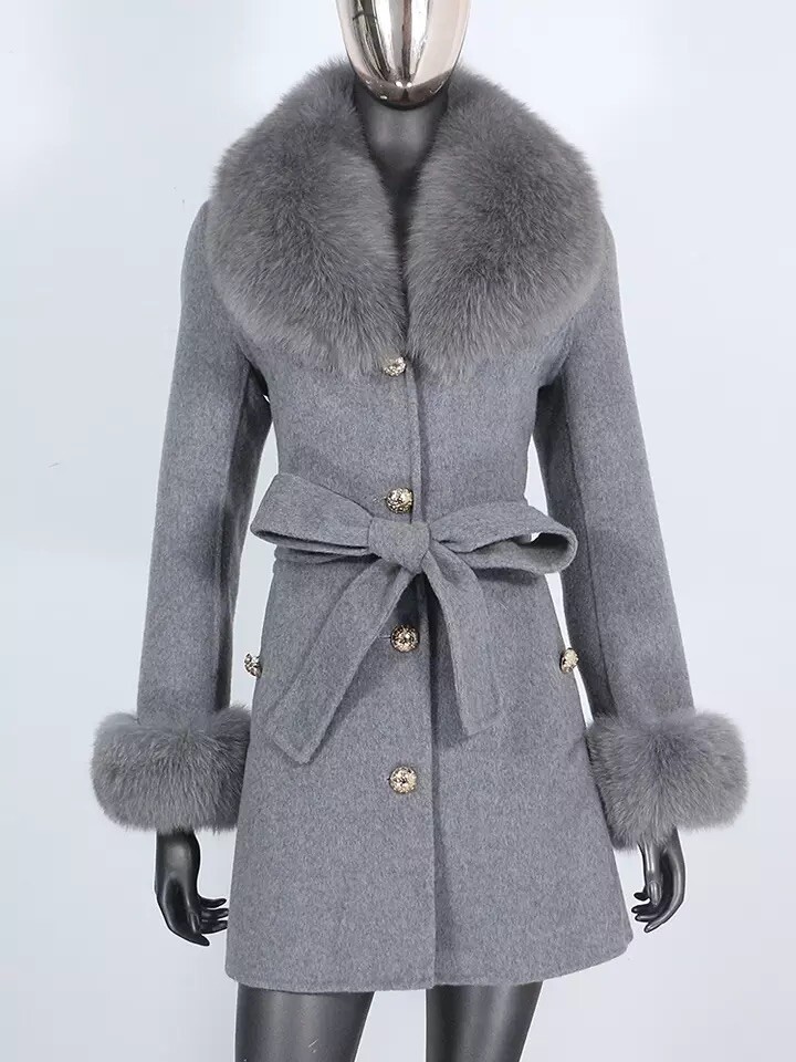 Wow sophisticated Ladies, The grey color Coat made from wool Bled trimmed with beautiful matching detachable real fox fur collar and cuffs. Been seen all celebrities and Instagram models , inspired by luxury designers style. delivery 5-7 business days Coat is available in all sizes. Please note coat is made from wool and polyester blend . Different colours available on my other listings About fox fur we use : domestic European red fox vulpes Non-endangered or non-threatened animal and follow US Fish & Wildlife regulations - International dispatch of animal products must follow all country laws All original materials we used are ranch raised animals, non wild &non-endangered or non-threatened animal and follow USA fish &wildlife regulations, (International dispatch of animal products are follow all country laws). All animals are carefully raised by our trust farmers in Europe and ethically picked by our professional fur experts from authoritative institutions to make sure the origin materials are ethically and high quality. Species : European fox & american fox, non wild &non-endangered or non-threatened animal All of our furs (Fox ) are from Fur farms, not wild anima ls.