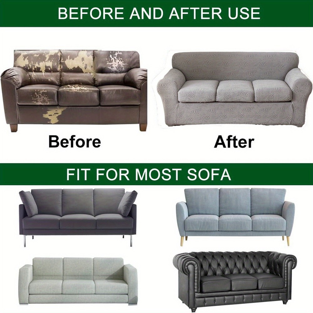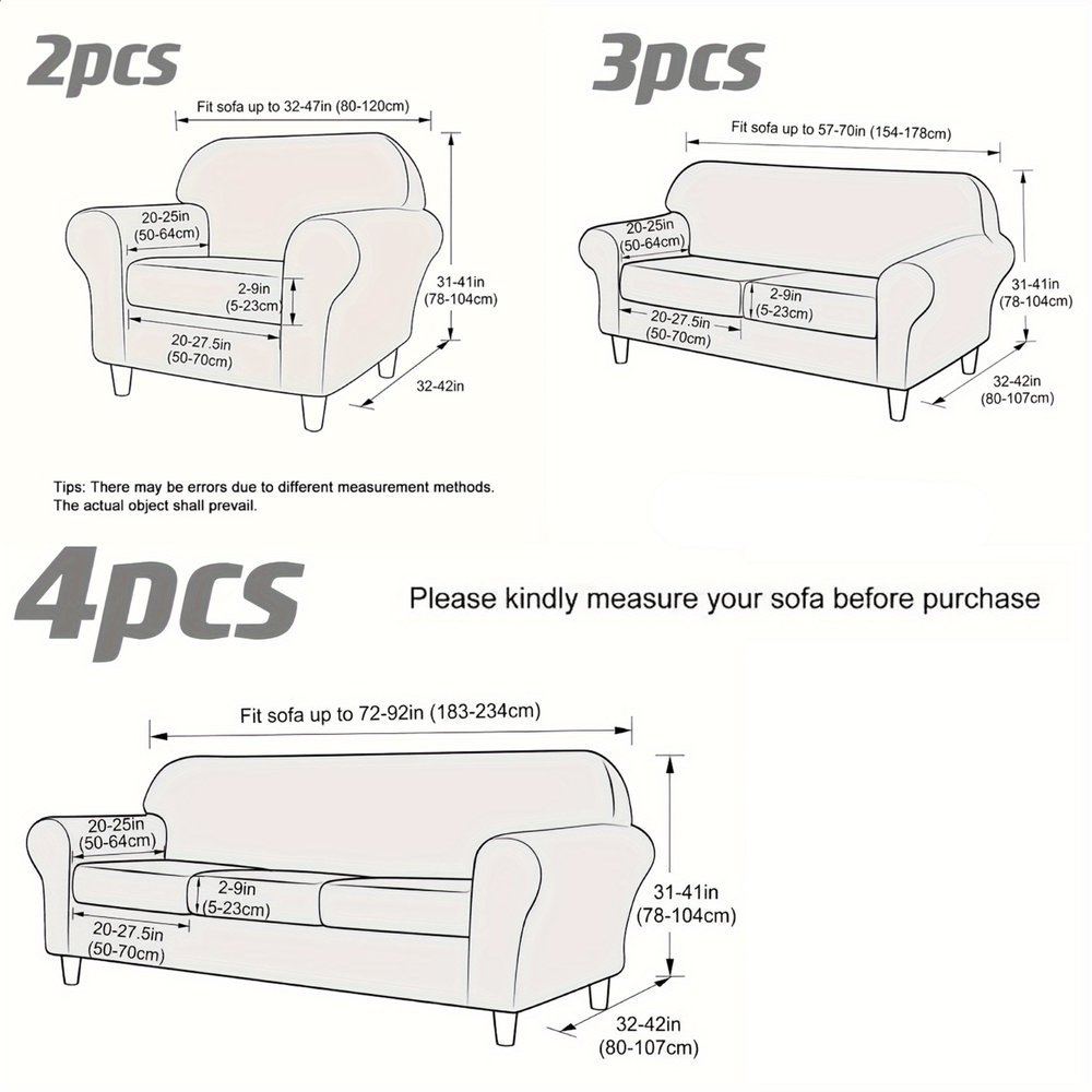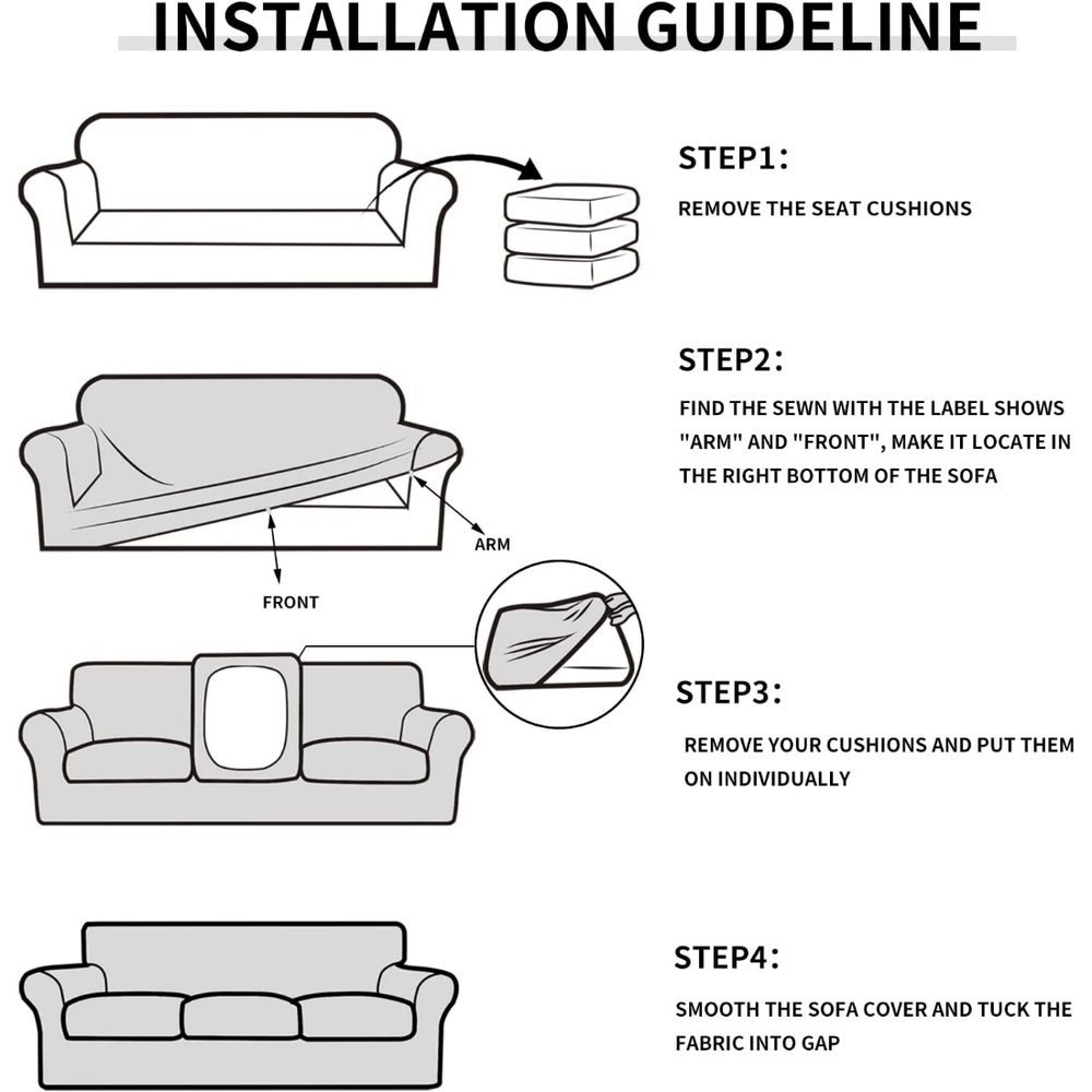 High-quality materials: The sofa cushion cover is made of 92% polyester fiber and 8% spandex, which is elastic and durable; it is soft and comfortable. Our multi-functional sofa cover has high flexibility and can be more flexibly applied to various sofas, such as T-shaped sofas, box-style sofas, high-backed sofas, small and extra-large leather sofas. The improved thick fabric is more durable. Two-piece design: The cushion cover is designed as a two-piece set, including the base cover and the cushion cover. Covering the cushion separately not only hides the excess fabric under the cushion but also solves the rebound problem. The anti-slip sofa cover is suitable for furniture with a width of 31 - 49 inches. Please measure the size of your furniture before purchasing. Comprehensive protection: The universal cover provides 360-degree all-round protection for your sofa, resisting daily stains, accidental tears, scratches or bite marks. The sofa furniture cover can also transform your old and worn-out sofa into the focus of the living room. Our sofa covers are especially suitable for families with children and pets, saving you money by extending the lifespan of the sofa. Stay in place: This elastic fabric is made of thick elastic fabric, which can well cover the bottom edges and provide comprehensive protection. The sturdy elastic edges at the bottom can ensure that your sofa cover stays in place without sliding or curling. The separate cushion cover helps the furniture maintain a tight fit, without wearing or wrinkling. This anti-slip sofa cover has an elegant and fashionable appearance, adding decorative effect to your sofa and living room, while also preserving the original shape of the furniture. Installation and maintenance: The furniture protection cover with cushion cover is very easy to install and remove. Please refer to the installation guide in our pictures, and you can complete the installation in a short time by yourself. This independent sofa cover is easy to maintain, only cleaning the dirty cushion cover is enough, without cleaning the entire furniture set. You can gently wash it with cold water, and do not bleach it. View. Do not use bleach; wash it gently with cold water alone.