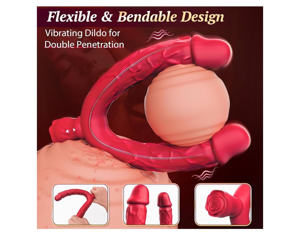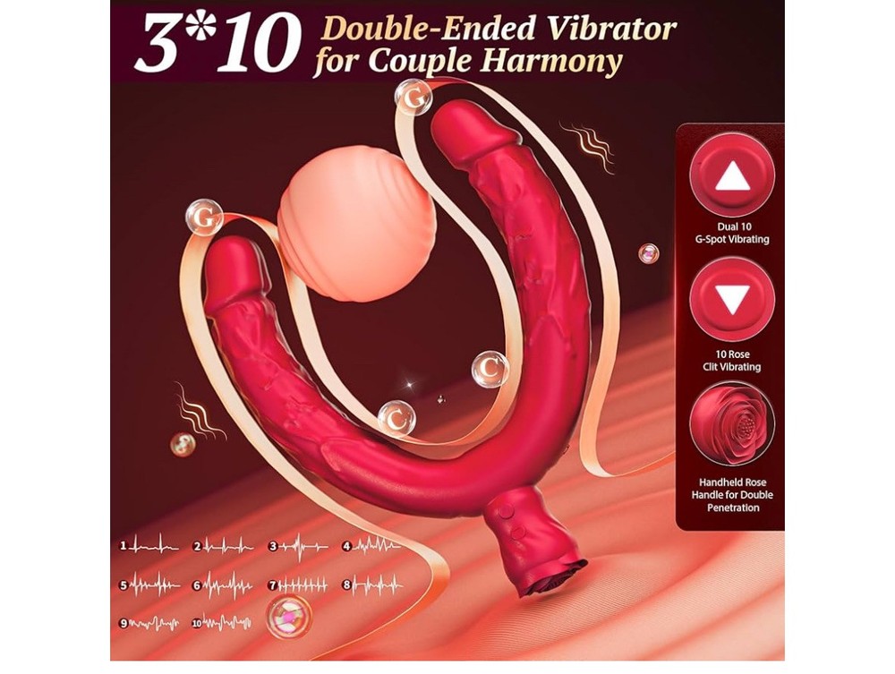 Double Dildo Sex Toys - G-spot Vibrator Lesbian Sex Toys for Couple with 10 Vibrating Modes, Long Realistic Strapless Dildo for Anal Pegging Play, Adult Rose Toys for Women Gay