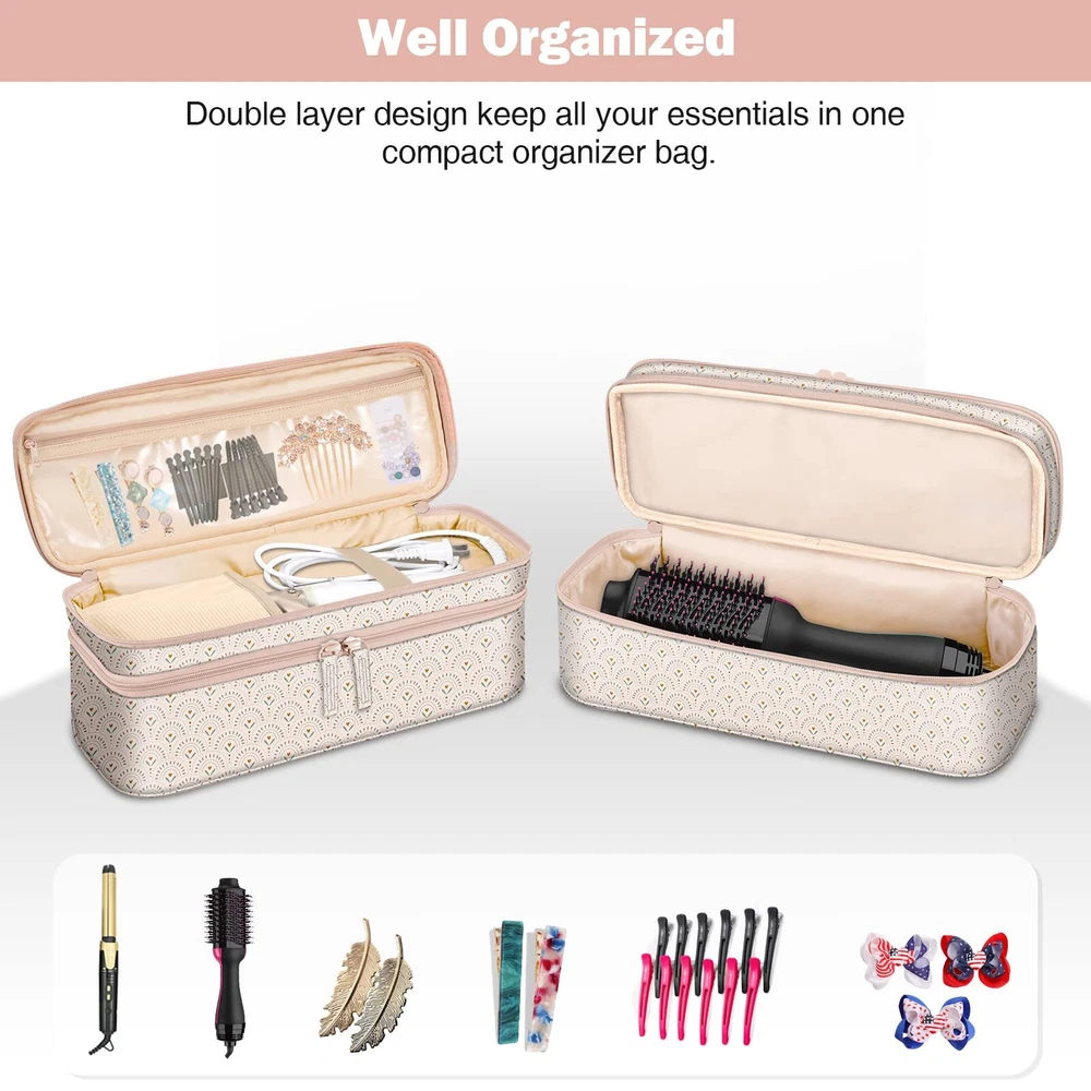 Double-Layer Travel Carrying Case for Revlon One-Step Original 1.0 and PLUS 2.0 Hair Dryer/Volumizer/Styler Package Included: 1 x Double-Layer Travel Case (Case Only) 【Compatible】Travel carrying case designed for Shark HD430 FlexStyle Air Styling & Drying System / Shark SmoothStyle brush, compatible with Dyson Airwrap styler, for Revlon One-Step Original 1.0 and PLUS 2.0 / Revlon one-step hair dryer and styler. Also compatible with Hot Tools / Umeely / TYMO / OMOTeam / CONAIR / Parwin Pro / LANDOT / ADTZYLD/ Beautimeter / MEGAWISE / Mayloa attachment or similar items in the same size. (Bag Only, Accessories Not Included!) 【Large Capacity】Double layer design keep all your essentials in one compact organizer bag. Bottom Layer specially designed for Revlon One-Step Original 1.0 and PLUS 2.0 Hair Dryer Brush, Hair Thermal Smoother Cream and more. Top layer with 1 zippered pocket to store hairpins or accessories. 1 mesh pocket with elastic bands for brush, hair clips, hair care essentials, etc. 【Water Resistant】Made of tear resistant and water resistant exterior, durable to protect your hair dryer from impacts and splashes. Well padded cushion interior offers excellent protection against from bumps and scratches. 【Portable On-The-Go】Steady hand strap for portability, Smooth and durable dual zipper convenience for easy opening and closing. 【Great Gift Idea】 The best gift for your girlfriend, daughter, wife, friends on birthday, anniversary, Valentine's Day, Mother’s Day, Thanksgiving Day, Christmas and New Year.