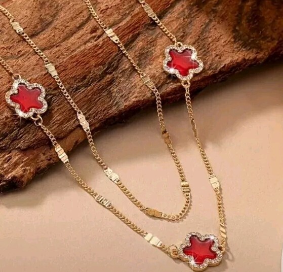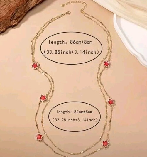 This stunning necklace features a beautiful floral clover pendant that is sure to catch the eye. The necklace is made of 14k gold plated alloy and has a lobster closure for easy wear, and is perfect for a range of occasions, The necklace is 86cm in length and has an adjustable feature for added comfort. Its double layered style adds a touch of elegance, while the gold colour gives it a timeless appeal. Each item comes in a thank you bag and wrapped individually in coloured tissue paper and sealed in a bubble wrap envelope. All orders dispatched the same day Monday to Saturday, using Royal mail 2nd class delivery 3-5 working days estimated delivary time. Happy Shopping Thank you Opulent-Aura