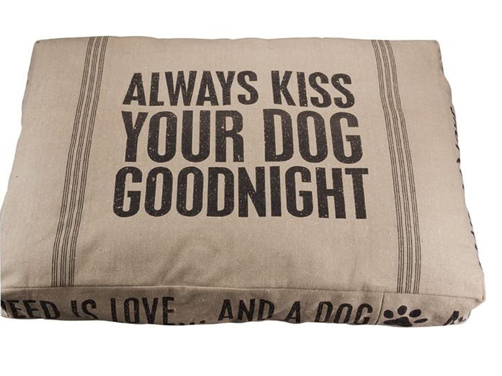 Cover 100% Cotton Imported Durable double-sided dog bed with flour sack style detailing 100% polyester fiber insert On front: Always Kiss Your Dog Goodnight; Back: Let a Sleeping Dog Lie Bed comes flat for eco-shipping; remove from bag, hand fluff heartily Authentic Primitives by Kathy pet bed designed in Lancaster, Pennsylvania; machine washable Size Large: Removable cover measures 20 x 26 x 6-Inches; Size XL: Removable cover measures 36 x 27 x 6-Inches; Please be aware there are many variances in color shades and color variate. These colors can also be affected by screen display settings. If item is not listed as Best Offer (Make an Offer) Pricing is as Listed Shipping Domestic shipping rates apply, discounts given for additional items. If Item is Free Economy Shipping - no shipping charges apply. Orders are packaged and shipped daily during normal business hours. Orders are not processed during weekends and national holidays. Items are shipped according to shipping method requested at time of purchase. Processing is 1-2 business days. Most orders are shipped within 24 hours Monday thru Friday. Morning orders are generally shipped same day. We only ship to confirmed address provided to us by Ebay. REFUSED DELIVERY OR UNABLE TO FORWARD: If a customer refuses to take delivery of an order, the customer will be charged all shipping fees associated with the order. LOST PACKAGES: We cannot control the delivery methods of the U.S. Postal Service Military Postal Service, UPS, DHL or Federal Express. All carriers may leave packages unattended at door steps, porches and back doors. It is critical that you take steps to secure your packages when they are delivered. If you do not receive a package and believe it was lost or stolen, please contact us through your order details and/or by phone. We will try to assist you in finding any misplaced package. Your local U.S. Post Office does have geo-tracking technology which tells them exactly where a package has been delivered. We accept all ebay forms of payment Return Policy: If you are not satisfied or would like to exchange your item, we provide a 30 day return policy. -Returns must be received within 30 days of initial request -Please package items carefully for return (items damaged on the return trip may not be refunded) -Refunds (less original shipping and return shipping costs) are issued within 1-2 business days of receipt of original item sent -Restocking fee may apply If the wrong item is returned the buyer must provide a prepaid shipping label if they want the incorrect item back. If the buyer does not provide a return label within 30 days, the item is forfeit. If the correct item is not received within 30 days, the refund will be denied The product(s) MUST be returned in the same condition as shipped. If the item is returned damaged or otherwise unsalable and out of return policy window the return will be denied or 50% of the refund will be withheld. Pet apparel is non-returnable if worn and/or covered with pet hair. Items must be returned shipped packaged appropriately. -If you are returning a shoe PLEASE NOTE: A shoe box is not a shipping box item should be returned in proper shipping container. -If state item defective or doesn't work - explanation is needed. -If you feel description is inaccurate - please describe inaccuracy. We aim to show you accurate product information. Manufacturers, suppliers and others provide what you see here Feedback: - We appreciate positive feedback. -If for any reason there is a problem or concern with your order please contact us for a solution. We appreciate the opportunity to resolve any problem by contacting us before leaving negative or neutral feedback. - We pride ourselves on prompt, accurate service and making sure you are pleased with your shopping experience. THANK YOU FOR SHOPPING WITH US