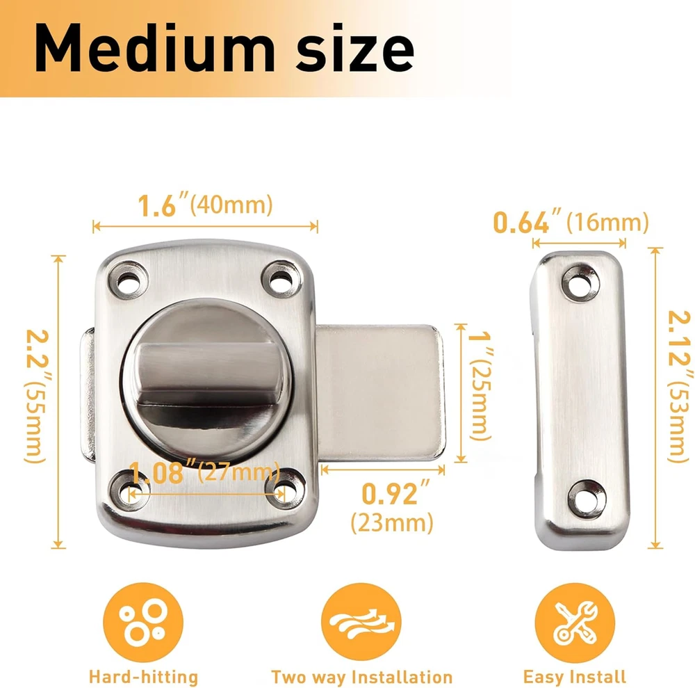 【Zinc Alloy Material】The Alise Double-Sided Gate Latch is expertly crafted from high-quality zinc alloy, providing exceptional resistance to daily corrosion and oxidation. This ensures that the latch remains durable and reliable over time. The polished and brushed surface not only enhances its aesthetic appeal but also offers protection against daily scratches, making it a perfect addition to any door. 【Left And Right Knob Design】This innovative door latch features a unique left and right knob design, allowing for a 180° smooth rotation that simplifies the transition between open and closed states. The interconnected slide lock mechanism grants flexibility during installation, as it can be configured for either side, accommodating various door orientations effortlessly. 【Heavy Duty Design】Constructed from thickened solid metal, this barn door latch is built to withstand strong external impacts, ensuring it remains sturdy and reliable under pressure. Its internally pry-resistant design provides added security, making it an ideal choice for households with elderly members or individuals living alone. 【Provide Security Measures】Designed for both indoor and outdoor use, the Alise gate latch effectively prevents unauthorized access by locking from one side. This feature enhances the safety of your home, allowing you to secure sliding doors for privacy or restrict access to certain areas, such as closets, safeguarding children and pets. 【Easy To Install】Installation is a breeze with the included accessories. Simply mark the desired height and mounting holes on the door frame, and secure the latch using screws. (Note: Ensure the correct distance for the swivel card to guarantee optimal functionality.) Product Description 1 Bedroom 2 Balcony 3 Washroom 4 Fence 5 Wooden Pet Carrier