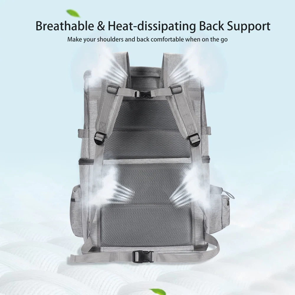 At , we focus on the differentiated needs of you and your pets, and are committed to bringing you a high-quality experience and a convenient lifestyle. The double-compartment pet carrier backpack features 2 sturdy cabins, 5 ventilated mesh windows and adjustable structure design, is born for pet owners with multiple small pets. DUAL COMPARTMENT DESIGN: This pet carrier backpack features 2 separate zipper-attached compartments to shelter 2 small pets. You can also remove the divider and turn 2 compartments into 1 compartment to shelter 1 small to medium-sized pet, suitable for people who have multiple small pets. EXCELLENT VENTILATION&VISIBILITY: The double compartment dog backpack carrier comes with 5 breathable mesh windows and 6 ventilation holes on 4-side of the carrier backpack, to provide plenty of air and great view for your pet. With zippers on both top and front, your lovely pets can be put in and out of the pet backpack easily. TRAVEL IN COMFORT: The back cushion and shoulder straps are equipped with extra thick padding for more comfort while the waist and chest buckles give you extra support when on the go. Great for traveling, hiking, riding, walking, sightseeing, camping and more outdoor activities. PRACTICAL SIDE POCKETS: The pockets on both sides of the carrier backpack allow you to store essential pet supplies(such as bowls, water bottles and toys), so you can let your pet be well taken care of while out. There is also a holder for trash bag or poop bag on the side, which is a great convenience that most other backpacks don't have. MEASURE YOUR PET BEFORE PURCHASING: Two-tier pet carrier backpack ideal for 2 small pets(up to 12 Lbs for each compartment) or 1 small to medium-sized pet(up to 24 Lbs). Weight may be misleading to determine whether or not a pet would fit. Please also refer to the size chart in the main images or in the descriptions, then measure your pet's height and length to determine if it is suitable for your pets.