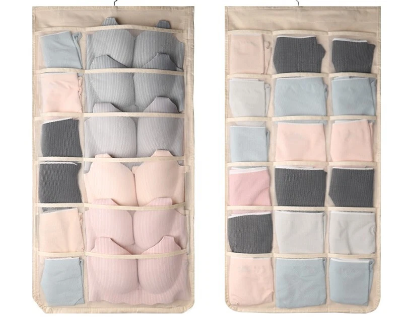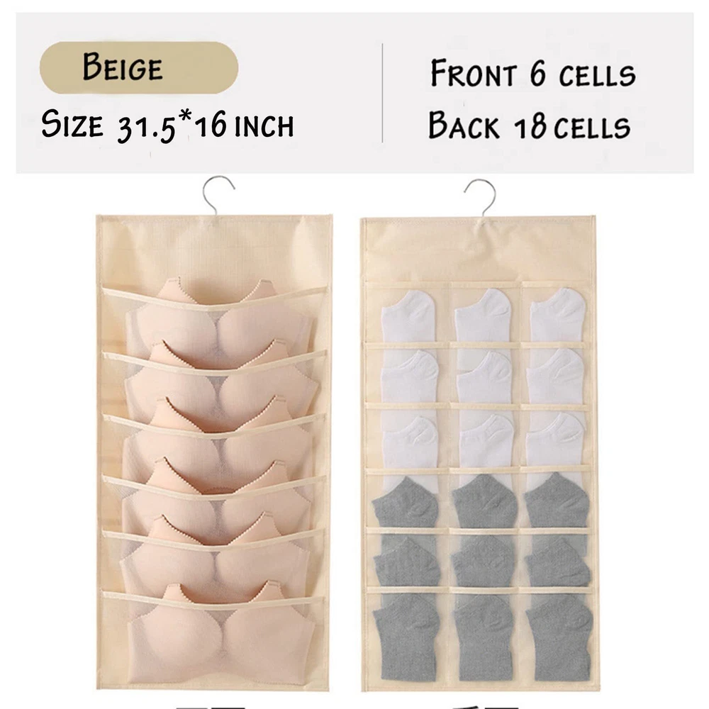 1.Eco-friendly and Durable Material: made of breathable nonwoven mesh cloth 2.Transparent, can make you see and find stuff easily. 3.Two-sided organizer, space saving. 4.Comes with a stainless-steel hanger. Hand wash, and it can dry in air quickly. 5.Versatile usage: you can hang this organizer in closet, laundry room, bedroom, storage room, dorm, travel RV etc. It will give you a cleaner space.