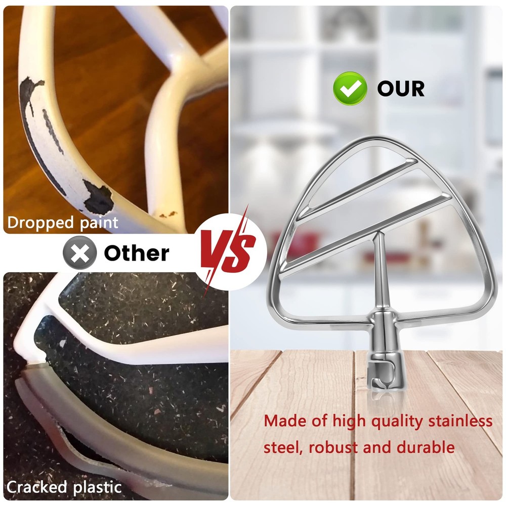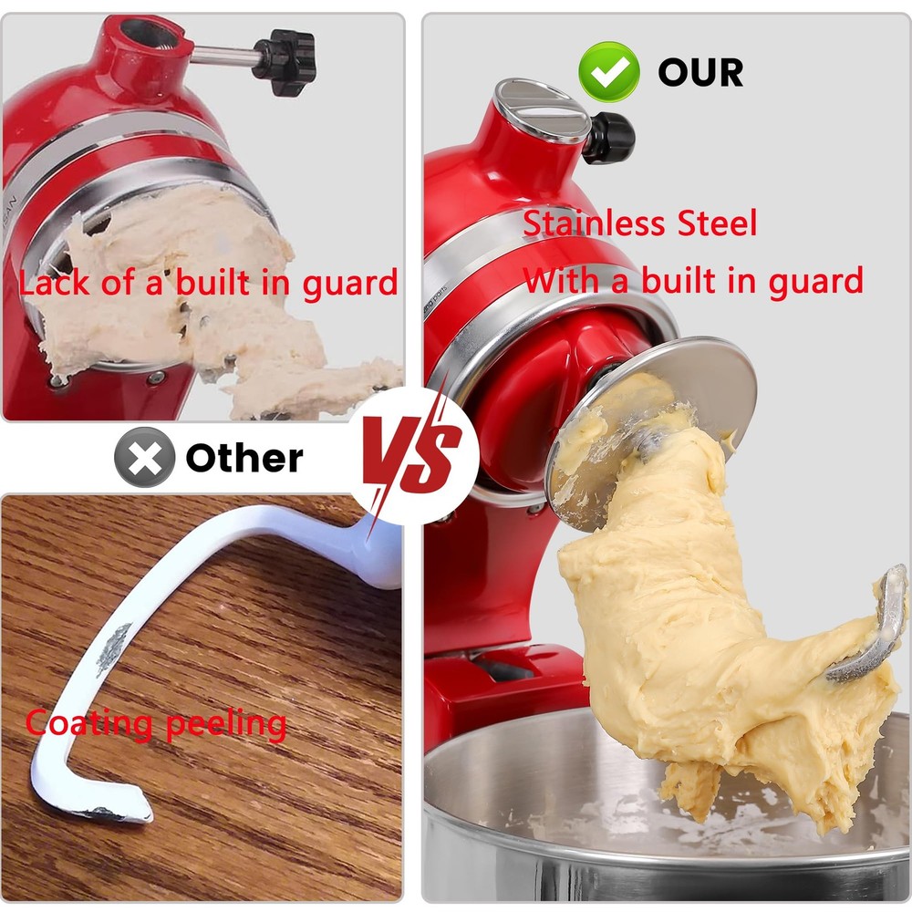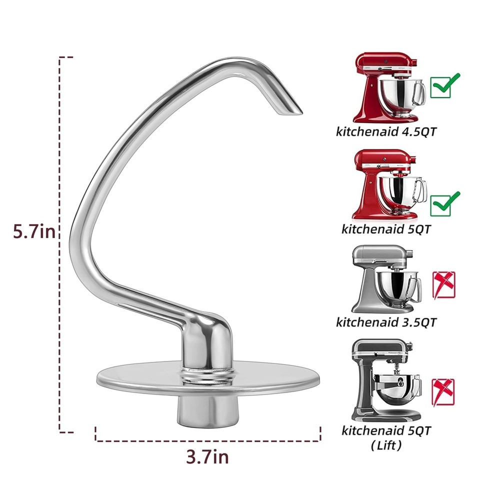 Elevate your baking with the Dough Hook & Flat Beater Attachment Set, designed specifically for the KitchenAid 4.5 QT Tilt-Head Stand Mixer. Whether you're kneading dough for bread or mixing batter for cakes, these attachments provide the perfect solution for all your baking needs. Premium Quality: Both the dough hook and flat beater are made from high-quality stainless steel, offering durability and long-lasting performance. These attachments are built to withstand the rigors of regular use. Versatile Use: The combo set is perfect for a variety of tasks including mixing, kneading, and whipping doughs. Whether you're making bread, pizza, or pastries, these attachments will help you achieve perfect results every time. Innovative Spiral Design: The spiral dough hook is designed to knead dough thoroughly and efficiently, ensuring proper gluten development for more elastic and smooth dough. Effortless Baking: The flat beater is ideal for mixing cake batter, cookie dough, and other mixtures, saving you time and effort in the kitchen. Easy to Install and Clean: Both attachments are easy to install and remove. They are also dishwasher safe, making cleanup a breeze after your baking sessions. Make your baking easier and more enjoyable with the Dough Hook & Flat Beater Combo Set. Perfect for both home bakers and professionals, these attachments will quickly become an essential part of your kitchen toolkit. ๐ฃ๐ฟ๐ฒ๐บ๐ถ๐๐บ ๐ค๐๐ฎ๐น๐ถ๐๐ Crafted from high-quality stainless steel, ensuring long-lasting durability and resistance to wear and tear. ๐ฉ๐ฒ๐ฟ๐๐ฎ๐๐ถ๐น๐ฒ ๐จ๐๐ฒ Perfect for mixing, kneading, and whipping various doughs, including bread, pizza, and pastries. ๐๐ป๐ป๐ผ๐๐ฎ๐๐ถ๐๐ฒ ๐ฆ๐ฝ๐ถ๐ฟ๐ฎ๐น ๐๐ฒ๐๐ถ๐ด๐ป The spiral dough hook offers efficient kneading, promoting proper gluten development for smoother dough. ๐๐ณ๐ณ๐ผ๐ฟ๐๐น๐ฒ๐๐ ๐๐ฎ๐ธ๐ถ๐ป๐ด The flat beater is ideal for mixing cake batter, cookie dough, and more, reducing the need for manual effort. ๐๐ฎ๐๐ ๐๐ผ ๐๐ป๐๐๐ฎ๐น๐น ๐ฎ๐ป๐ฑ ๐๐น๐ฒ๐ฎ๐ป Both attachments are easy to install, remove, and dishwasher safe, making cleanup quick and simple.