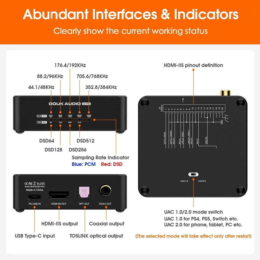 If available stock is too low, please advise the desired quantity. Product Highlights Swipe, compare and decide with confidence. 1 Overview 2 Gallery 3 Details & Specs 4 Support & FAQ Image gallery Tap thumbnails or arrows to switch the view. ‹ › ‹ › ‹ › ‹ › ‹ › ‹ › 1 / 6 2 / 6 3 / 6 4 / 6 5 / 6 6 / 6 Key benefits Why this product stands out Core features in a compact overview – ideal for quick comparison on eBay. Outputs and Connectivity Offers Optical, Coaxial, and I2S outputs to pair with a wide range of DACs while preserving a pure digital path. At a glance Quick summary Clear & concise Upgrade your digital audio chain with a compact USB interface that unlocks flexible, clean routing from USB to multiple digital outputs. The U2 PRO USB Digital Interface uses the XMOS XU316 processor to manage two channels (2.0) and supports Optical, Coaxial, and I2S outputs for compatibility with a wide range of DACs. It carries no power per channel, preserving a true digital signal path without onboard amplification. The model number U2 PRO identifies the unit, and shipping includes packaging for safe handling. Two-channel (stereo) operation and USB bus integration make this interface suitable for compact PC setups or Hi‐Fi rigs that require flexible routing without amplification. Details & Specs Technical Specifications Mobile-friendly Mobile: stacked view. Desktop: table view. Chip XMOS XU316 Outputs Optical, Coaxial, I2S PCM Support 32bit/768kHz DSD Support DSD512 Channels 2 (2.0) Power No power Model Number U2 PRO Chip XMOS XU316 Outputs Optical, Coaxial, I2S PCM Support 32bit/768kHz DSD Support DSD512 Channels 2 (2.0) Power No power Model Number U2 PRO Service & help Our promise, support & FAQs What’s included, service promise and answers to common questions. Our Service Promise Shipping, delivery window & tracking Efficient logistics: We ship via selected partner warehouses to ensure fast, direct delivery. Shipped from: Ships most likely from CN; in some cases may be fulfilled from another location. Carrier varies; delays possible. Optimized carrier choice: The best carrier is selected dynamically based on the fastest route. Reliable delivery window: The shown delivery time is an overall estimate incl. handling and transit. Transparent tracking: The tracking number is provided as soon as the parcel reaches the distribution center. Frequently Asked Questions (FAQ) Answers to common buyer questions What outputs does the Douk Audio U2 PRO provide? Optical, Coaxial, and I2S digital outputs (2.0 channel). What audio formats are supported? PCM up to 32-bit/768 kHz and DSD up to DSD512. Does it require an external power supply? No external power adapter is needed; it draws power from the USB connection. What is the U2 PRO used for? A USB digital transport that feeds a DAC or audio system via Optical, Coaxial, or I2S outputs. Structured product overview Designed for mobile & desktop Helpful support section © 2026 WARENGUT. All rights reserved. Item number: 2256810024444753