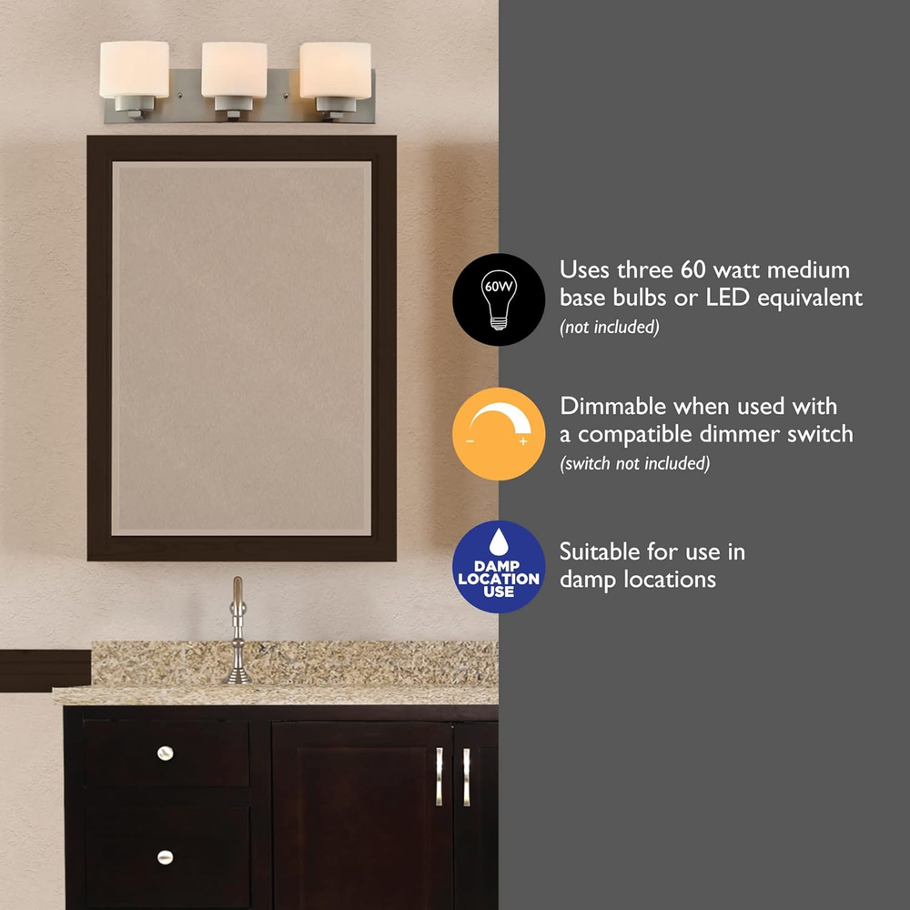 Absolutely love this vanity light! The dimmable feature is perfect for setting the right mood, and the frosted glass gives off a soft, flattering glow. Easy to install, looks sleek above the mirror—total game-changer for my bathroom! Bright enough for makeup but adjustable for relaxing baths. Highly recommend!