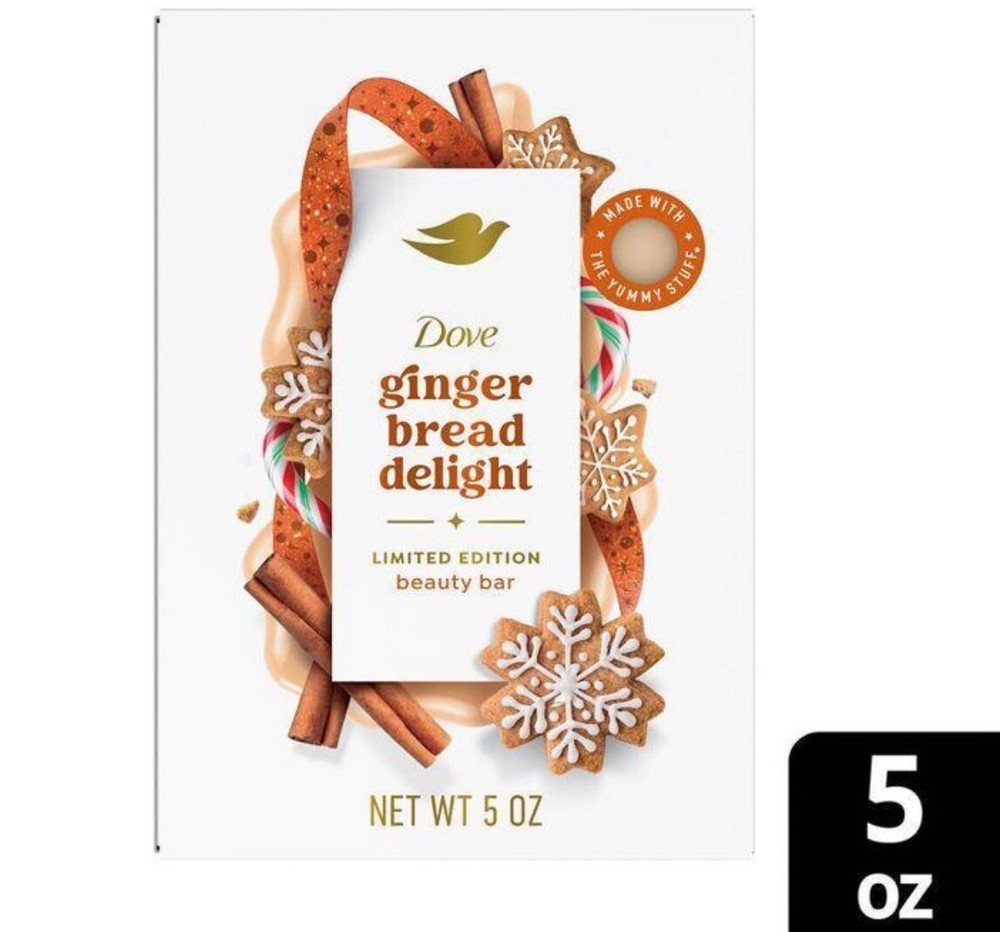Dove Limited Edition Holiday Treats Beauty Bar Soap, Gingerbread Delight, 5 Oz. Who else turns into a baking queen as soon as that holiday countdown starts? Put down the oven mitts and pick up our Gingerbread Delight Beauty Bar, a Limited Edition Holiday Treat. The unmistakeable scent of softened butter, sweet molasses and candied ginger of gingerbread cookies is an instant hit of holiday nostalgia, no oven needed. Indulge in the delicious scent as your skin soaks in the rich & creamy lather with plant-based cleansers and ¼ moisturizing cream to deeply nourish, leaving it soft to the touch. Let this seasonally spiced scent take you back to the good times. It may smell good enough to eat but remember – this treat is for the shower, so please don’t devour! • Indulge in a Gingerbread Cookie...now in a Beauty Bar • Nostalgic scent of butter, sweet molasses and candied ginger • Plant-based cleansers & ¼ moisturizing cream to deeply nourish skin • No sulfate cleansers • PETA approved Vegan • #1 dermatologist recommended