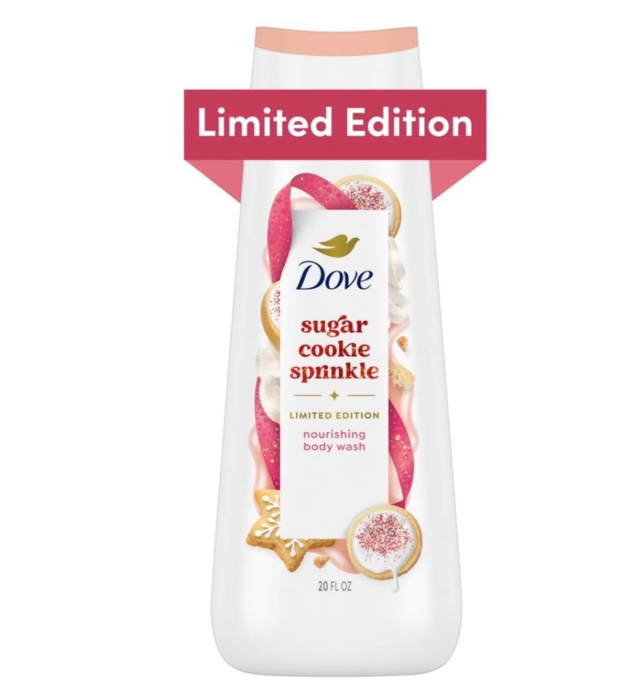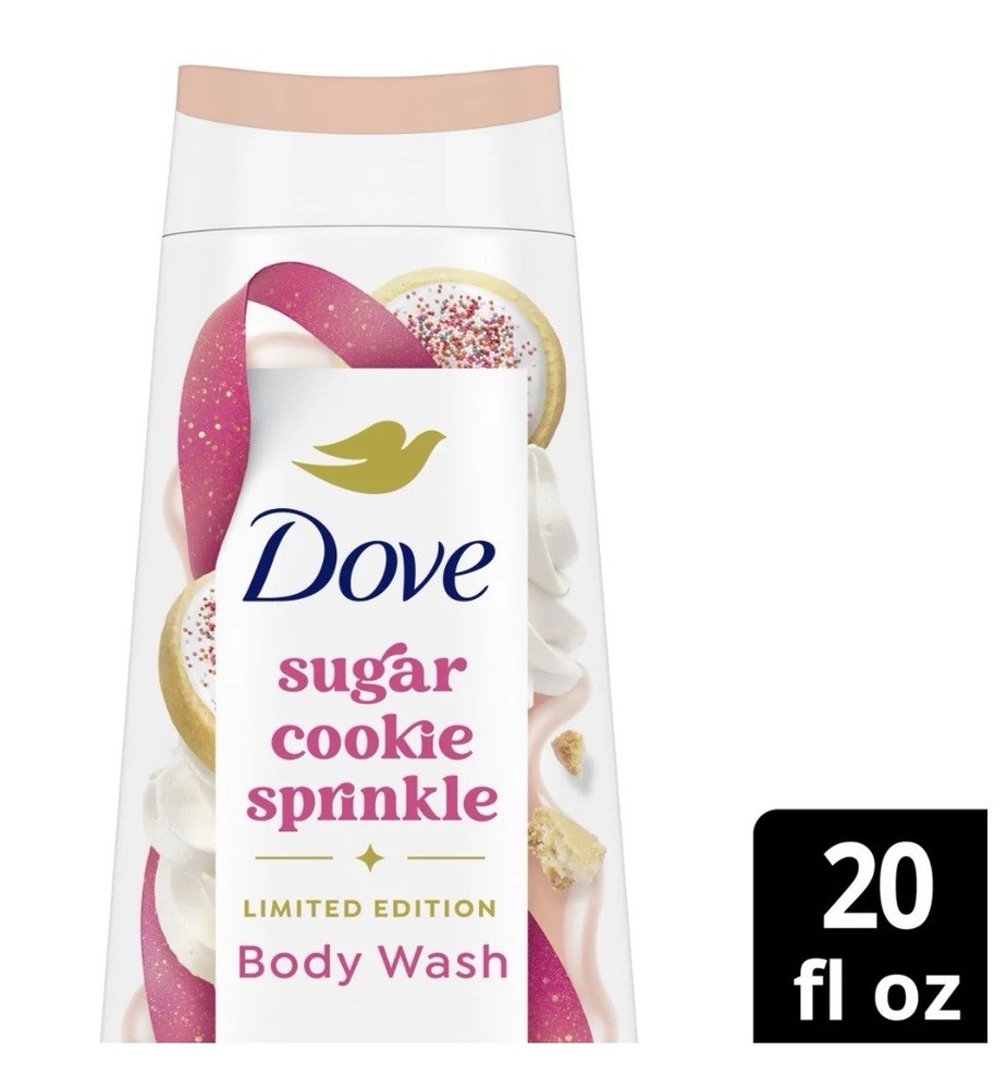 Dove Limited Edition Holiday Treats Body Wash - Sugar Cookie Sprinkle, 20 oz. Deck the shower with Dove Sugar Cookie Body Wash, a Limited-Edition Holiday Treat that promises to indulge your every sense and elevate your shower experience to new heights of delight. Inspired by the festive spirit of the season, let this body wash envelop you in a harmonious blend of delicious nourishment and irresistibly festive scents that is bound to transport you to a world of holiday joy and self-care. Indulge in the heartwarming vanilla nuttiness of freshly baked sugar cookies enveloping you in the shower. The rich creamy lather gently cleanses and nourishes skin for that holiday glow it deserves. Make every shower feel like a scrumptious holiday treat, minus those pesky crumbs. • DELICIOUS NOURISHMENT: Unwrap the gift of deliciously nourished skin with a freshly baked skin treat adding a dash of softness with microbiome-gentle cleansing, while lathering into delicious nourishment to reveal that holiday glow you deserve • IRRESISTIBLE FESTIVE SCENTS: Indulge in the heartwarming vanilla nuttiness of freshly baked sugar cookies enveloping you in the shower • TREATS FOR THE SHOWER: Gently cleanse and nourish your skin with the warm aroma of festive home-baked goodness; Make every shower feel like a scrumptious holiday treat, minus those pesky crumbs • THOUGHTFULLY MADE: Soak in the benefits of plant-based moisturizers that deeply nourish your skin, providing a luxurious shower experience that restores your skin''s natural radiance • 100% RECYCLED BOTTLE: Great for the planet • LIMITED EDITION HOLIDAY TREATS: Deck the shower with Dove Sugar Cookie Body Wash, a delightful Limited-Edition Holiday Treat that indulges your every sense with a harmonious blend of delicious nourishment and irresistibly festive scents