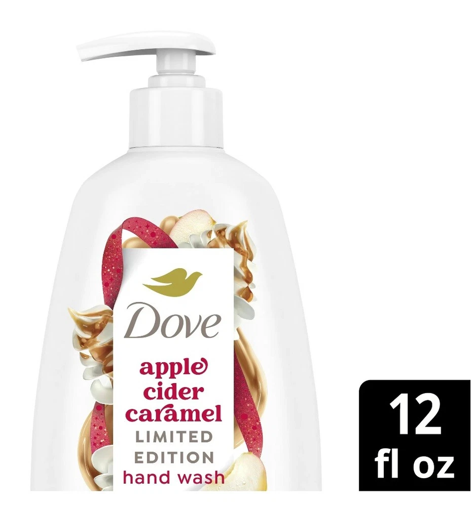 Dove Liquid Hand Soap Apple Cider Caramel Holiday Treats Limited Edition, 12 oz. Dove Liquid Hand Wash Apple Cider Caramel. The apple doesn’t fall far from the tree - especially when you grab your apple-picking basket as soon as Fall hits. Skip the orchard trip and head to the sink with our Apple Cider Caramel Liquid Hand Wash, a Limited Edition Holiday Treat. The freshly picked scent of warm apple cider, topped with whipped cream and drizzled in caramel is enough to get your juices overflowing with Fall joy. Dove Liquid Hand Wash Apple Cider Caramel Holiday Treats Limited Edition, 12 oz Satisfy your warm Apple Cider craving...now in a Liquid Hand Wash Aromatic scent of warm apple cider, topped with whipped cream and caramel Moisture boost 5x complex to gently cleanse for instant and lasting nourishment No sulfates & no parabens