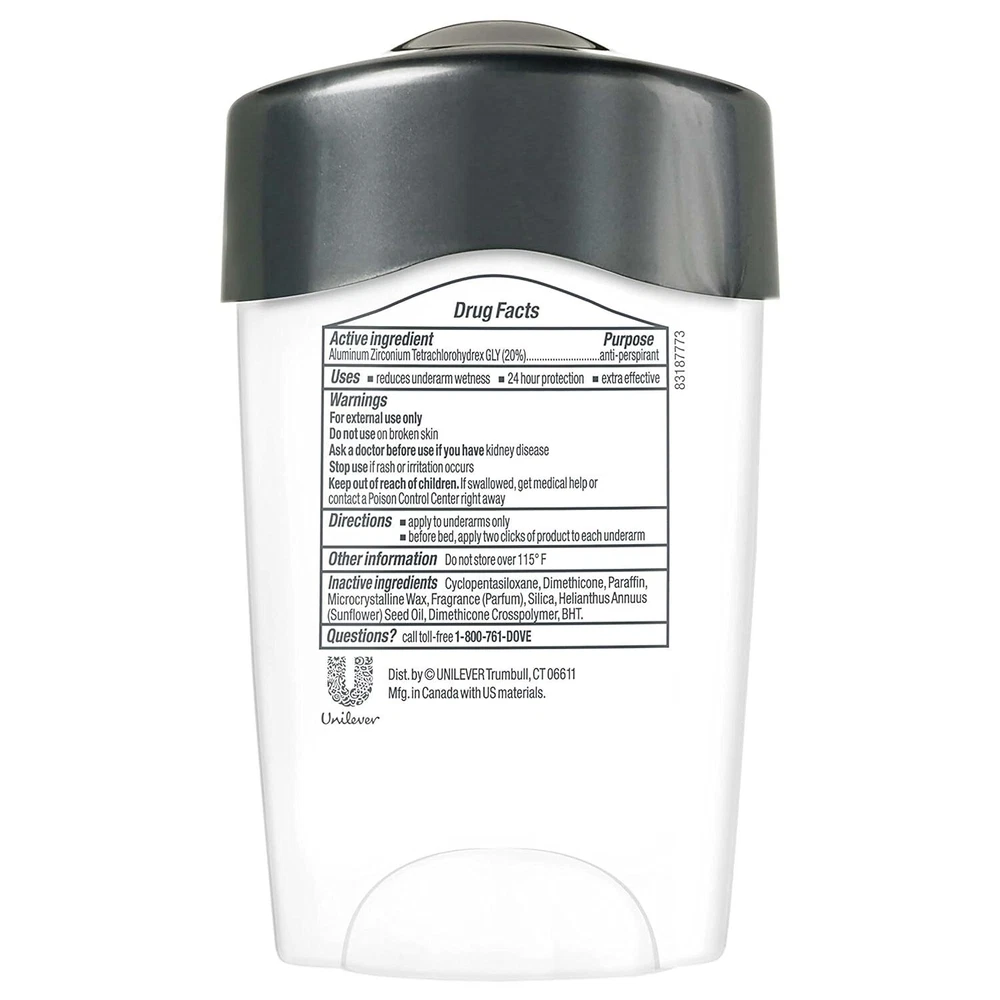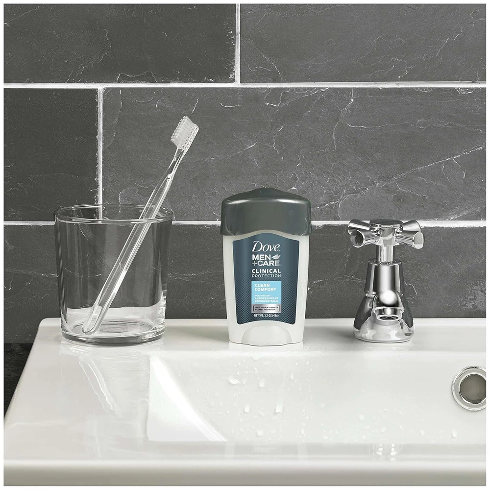 Product Description Dove Men+Care Clinical Protection Antiperspirant & Deodorant Stick, Sweat and Odor Protection, Clean Comfort, 1.7 Ounce (Pack Of 1) Dove Men+Care Clinical Protection Clean Comfort Antiperspirant Stick gives you 96h sweat protection while caring for sensitive skin. This antiperspirant stick is formulated with 1/4 Moisturizing Cream to help retain skin moisture and help protect against irritation for more comfortable underarms. This Clinical Strength antiperspirant features a long-lasting subtle fragrance to keep you feeling fresh and confident all day. Simply apply this clinical strength antiperspirant in an even layer onto each of your underarms to help soothe and protect your underarms from sweat and odor for lasting confidence around the clock. POWERFUL CLINICAL PROTECTION: Dove Men+Care Clinical Protection Clean Comfort Antiperspirant Stick gives you 96h sweat protection while caring for sensitive skin. NON-IRRITANT FORMULA: This Antiperspirant stick is formulated with 1/4 Moisturizing Cream to help retain skin moisture and help protect against irritation for more comfortable underarms. LONG LASTING FRAGRANCE: Dove Men+Care Clinical Protection Clean Comfort Antiperspirant Stick features a long-lasting subtle fragrance to keep you feeling fresh and confident all day. HOW TO USE: Apply this Clinical Strength Antiperspirant Stick on your underarms. CARE FOR THE PLANET: Each Dove Men+Care antiperspirant stick can be recycled. Follow the How2Recycle instructions on the back. Dove Men+Care antiperspirants are PETA-certified Cruelty-Free. CLEAN COMFORT RANGE: Try the full range of Dove Men+Care products, including antiperspirant deodorants, dry spray antiperspirant deodorants, face and body bars, and other hair and skin care products.. Ingredients Active Ingredient: Aluminum Zirconium Tetrachlorohydrex GLY (20.0%);Inactive Ingredients: Cyclopentasiloxane, Dimethicone, Paraffin, Microcrystalline Wax, Fragrance (Parfum), Silica, Helianthus Annuus (Sunflower) Seed Oil, Dimethicone Crosspolmer, BHT.