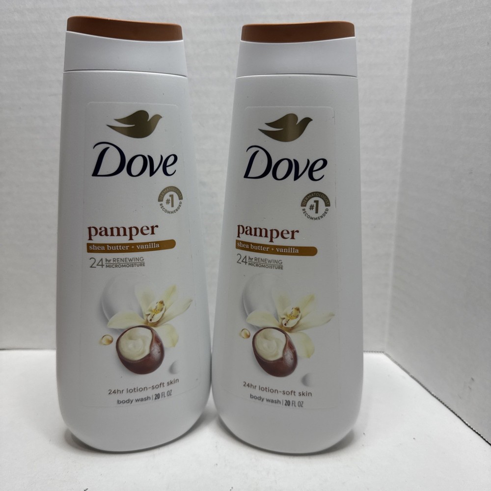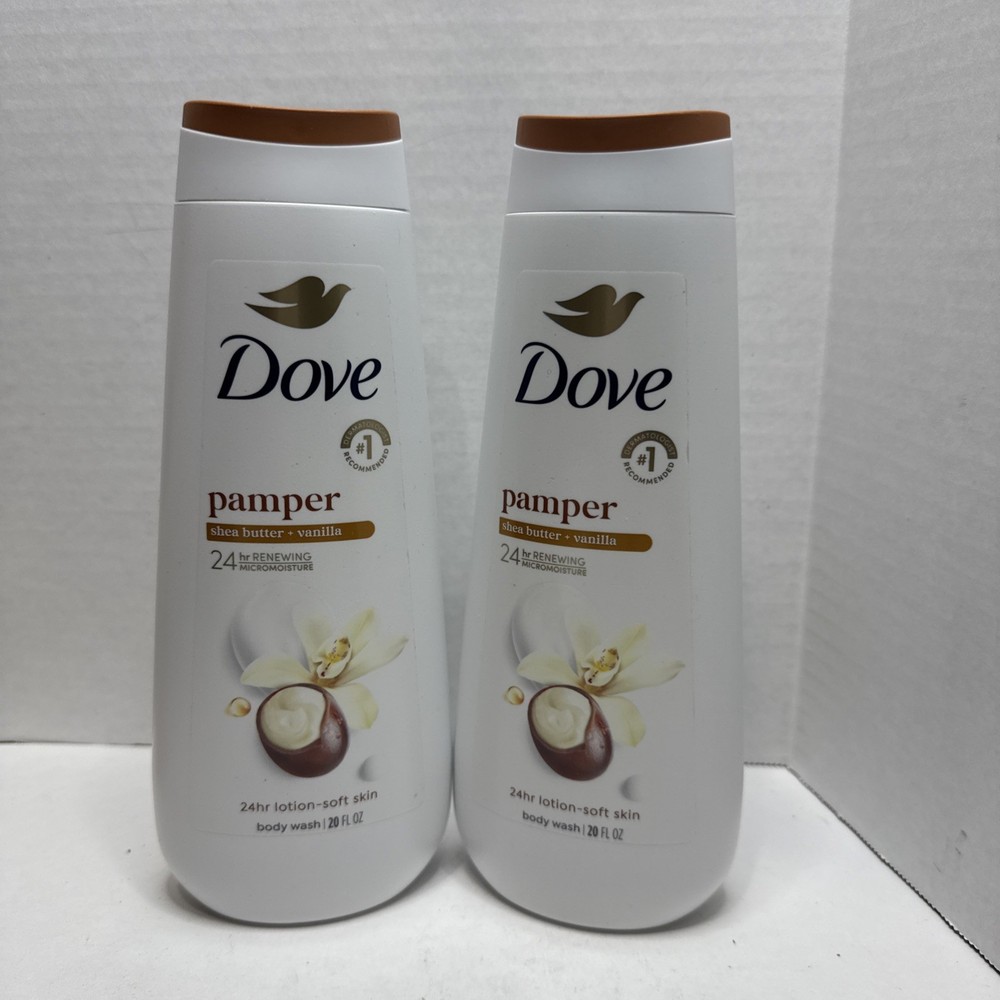 Dove Pamper Shea Butter & Vanilla, 24HR Renewing Body Wash, 20 Oz (2PK). Brand New pack of 2