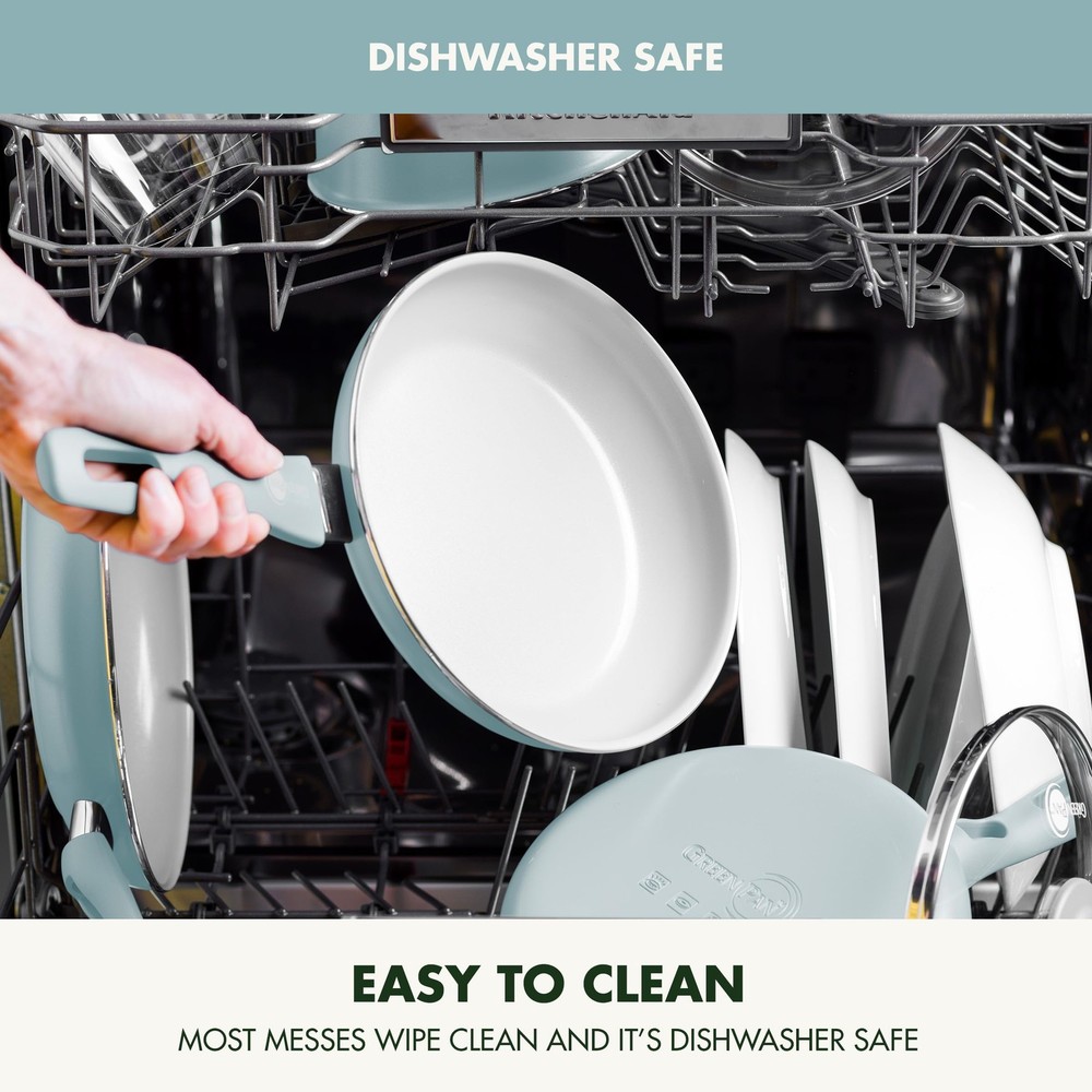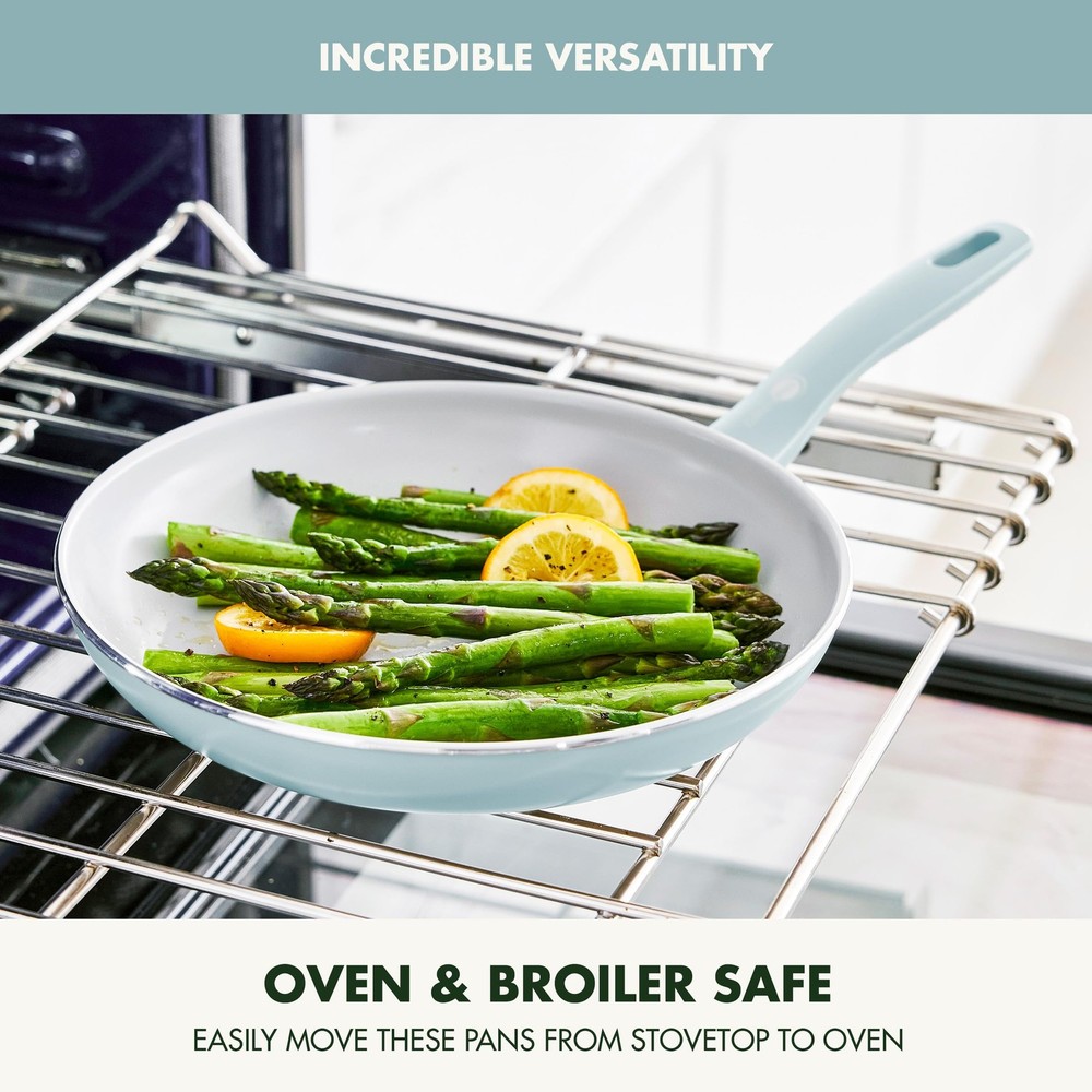 REINFORCED WITH DIAMONDS: 's original diamond-infused nonstick coating offers remarkable durability, balanced heating, and effortless cleanup. TOXIN-FREE: 's Thermolon healthy ceramic nonstick coating is free of PFAS, PFOA, lead, and cadmium. QUICK-HEATING ALUMINUM: The heavy-duty aluminum construction offers extreme strength with quick and even heating every single time. ERGONOMIC HANDLES: An eye-catching stay-cool handle offers a comfortable grip VERSATILE COOKING: Oven safe up to 350°F and safe for all stovetops, except induction. SNAG-FREE INTERIOR: The smooth, rivetless interior eliminates food traps to make cleaning even easier. HANDY POURING RIMS: Make pan-to-plate to transferring a breeze. EASY TO CLEAN: Hand washing recommended, dishwasher safe