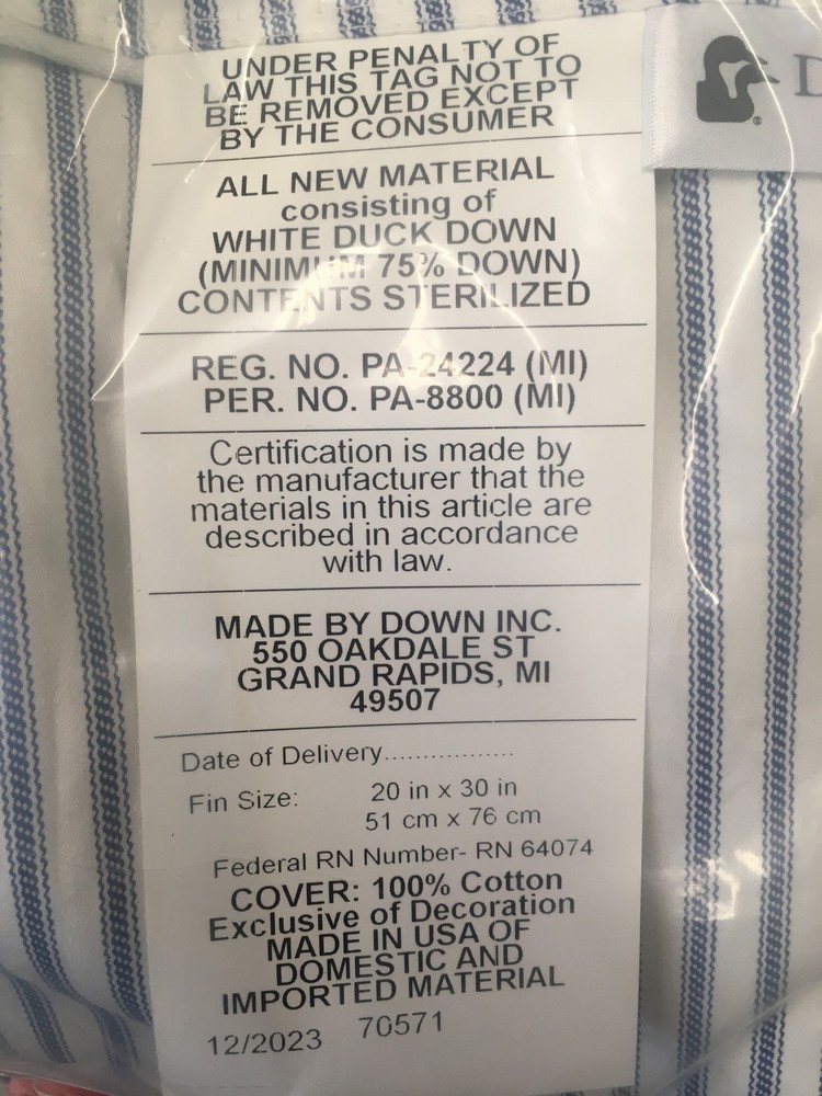 Material: Cotton Brand: Down Inc Size: Queen Item Length: 30.000 Type: Bed Pillow gtin13: 810020121186 Model: 70571 MPN: 70571 UPC: 810020121186 Item Width: 20.000 Color: White Origin: United States