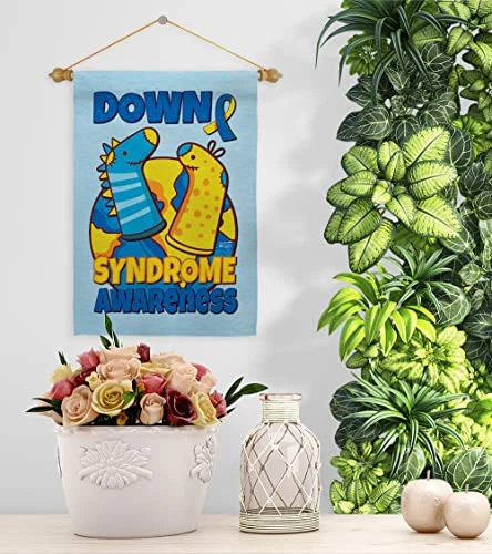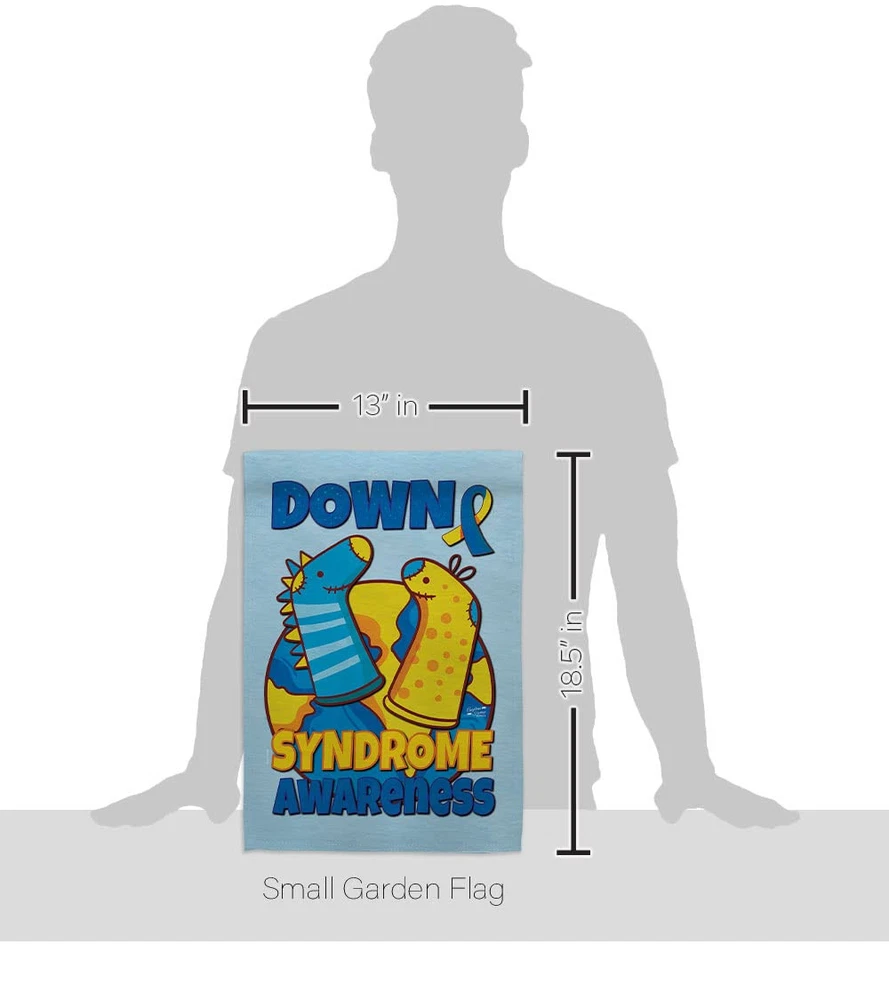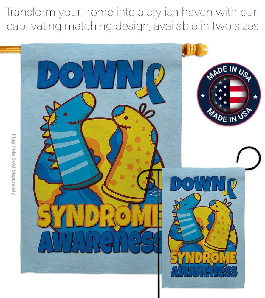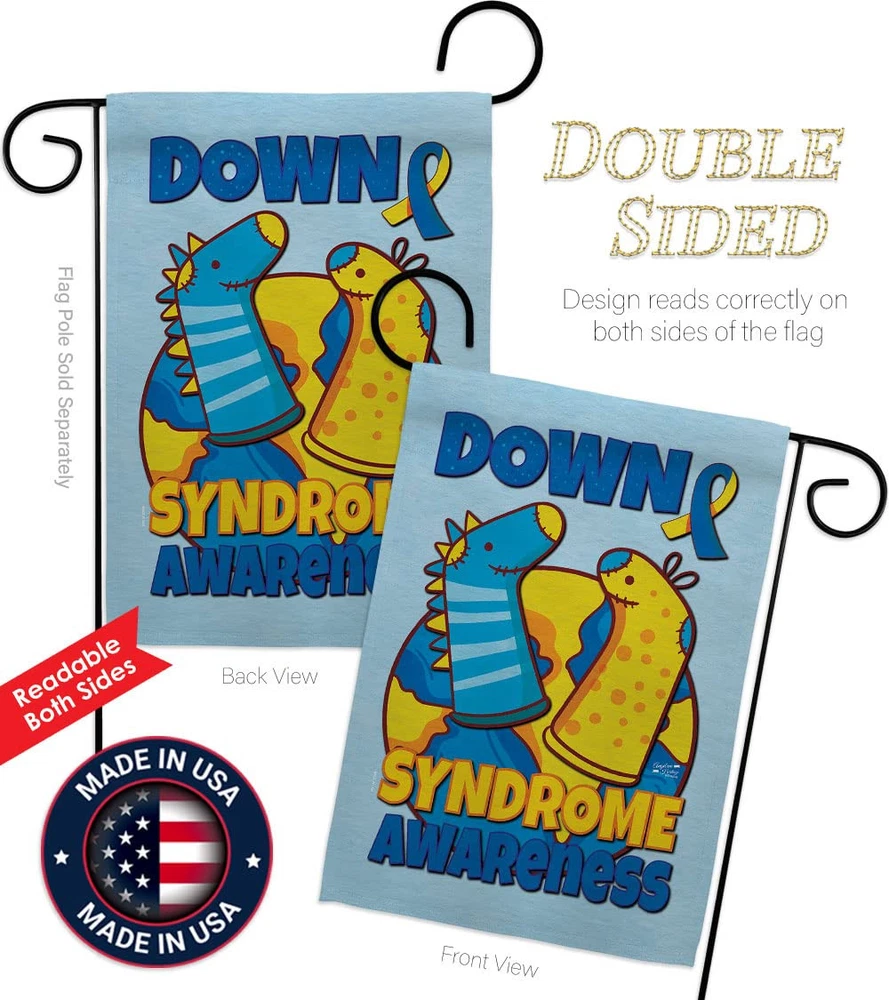 Down Syndrome Sock Garden Flag Pole Wood Dowel Blue Yellow Ribbon Breast Canc...
