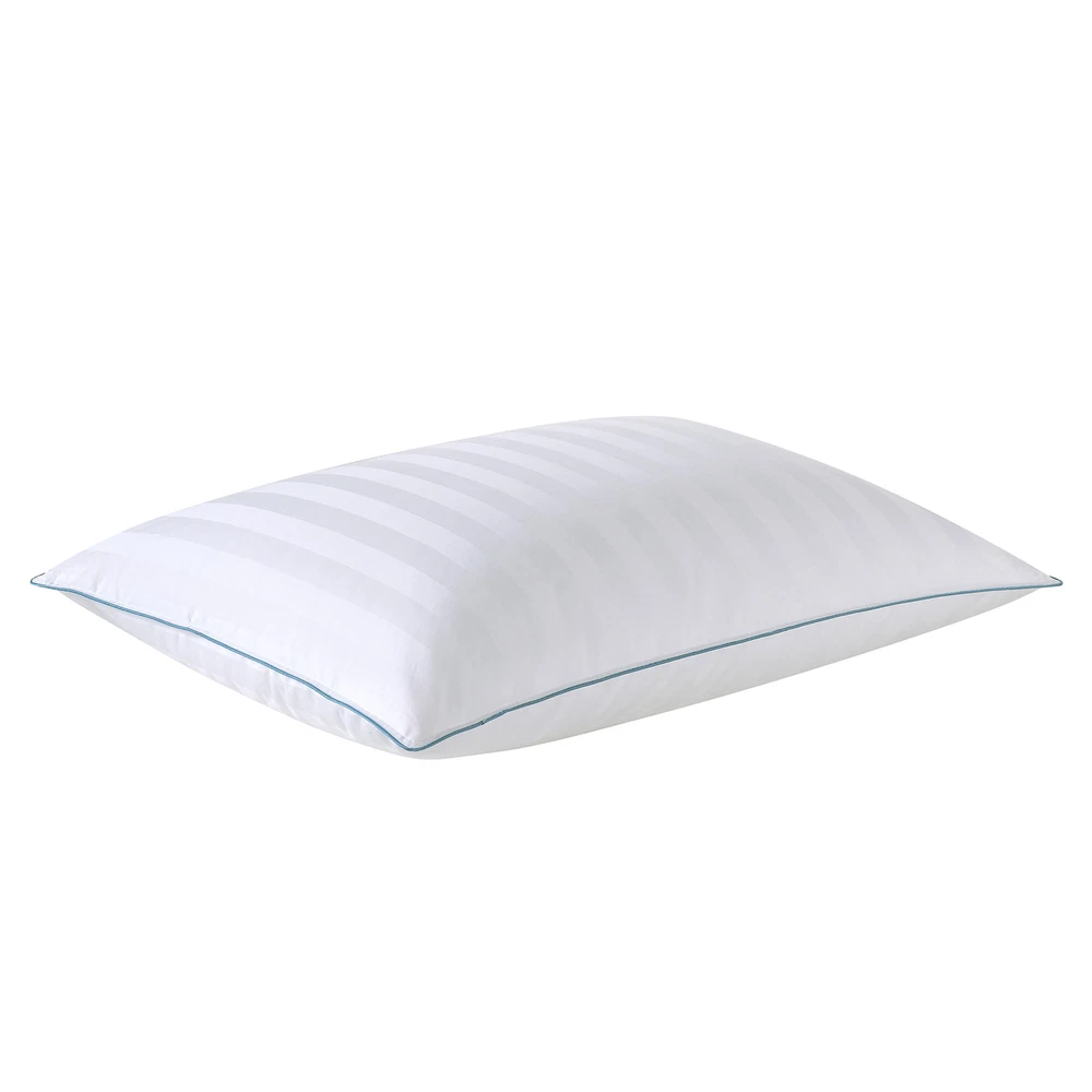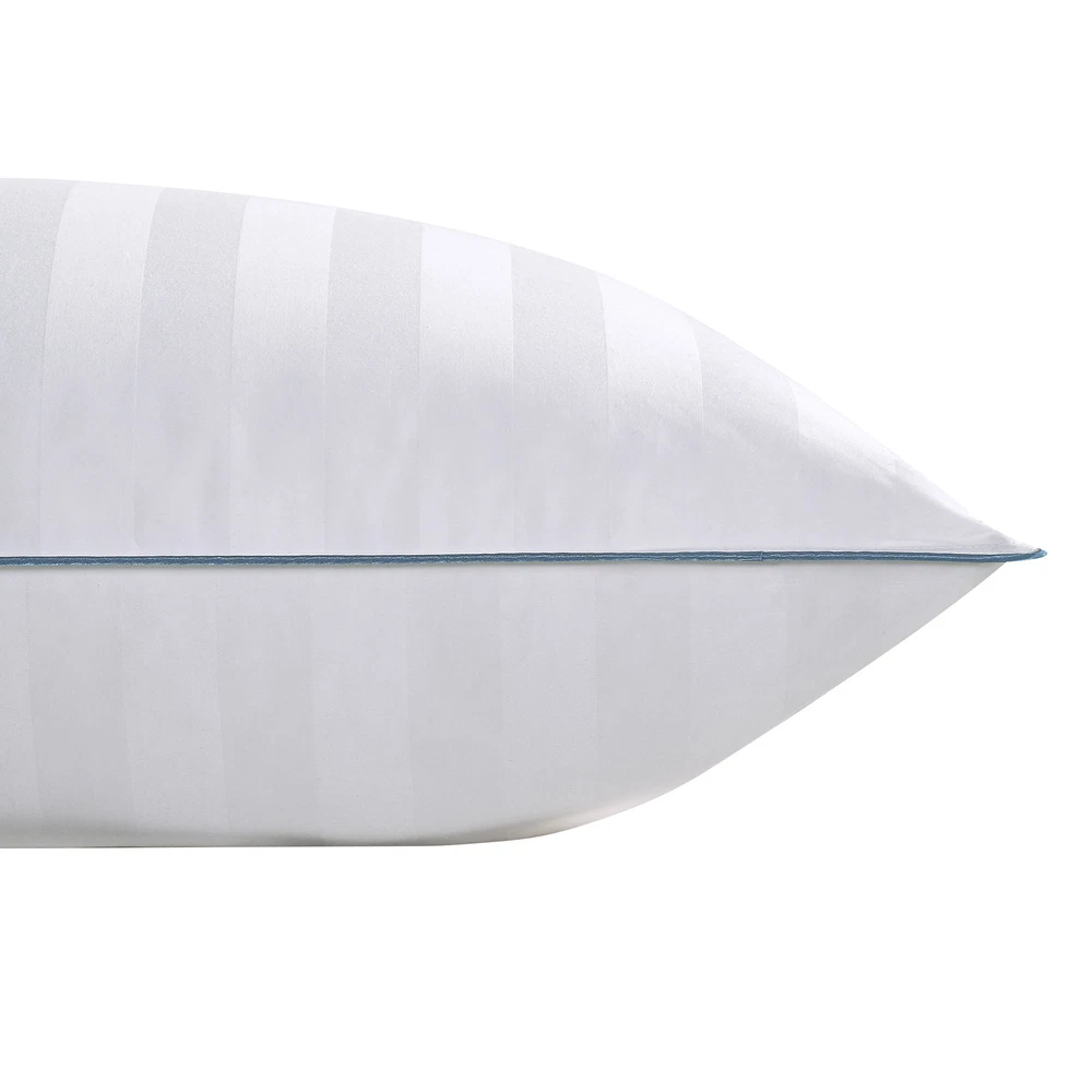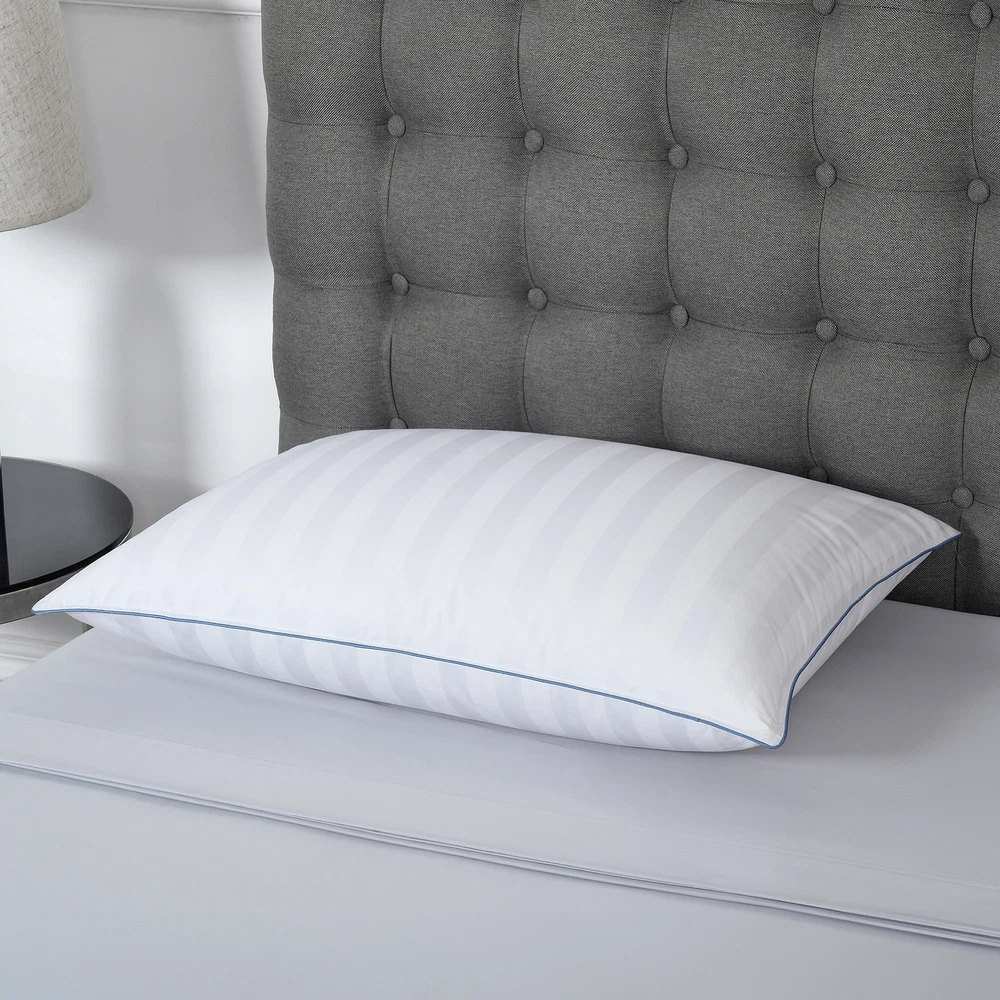 Cleaning Recommendation: Machine Washable Color: White Pillow Support: Medium Pattern: Striped Sleep Position: All Positions Features: Hypoallergenic Fill Material: Down Brand: Down Haven Shipping Restrictions:: AK, HI, MS, WA, Freight Forwarders, Mail Stores, P.O. Box Type: Does not apply Pillow Size: Jumbo Size Cover Material: Cotton