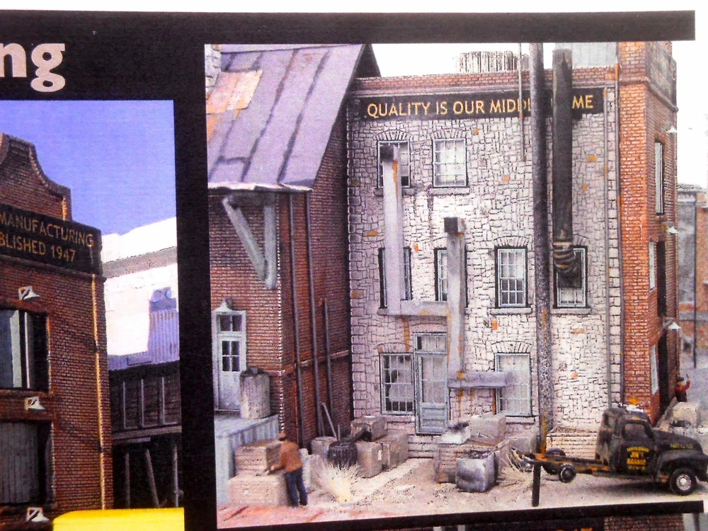 Special this week! Special pricing + will also send a complete 60 piece unpainted detail set (a $25 value) to get your feet wet at no extra charge! Save $35! New in Box, still shrink wrapped. The best kits you can buy for 3 reasons!! One. Attention to detail & realism. All of the original pattern work is hand carved by an artisan for maximum realism. This allows Downtown Deco kits to include details you'll never find in other kits. Missing and chipped bricks, "ghost' staircases and walls, crumbling stucco and cracked and weathered concrete. If you can find it in real life you'll see it in a Downtown Deco kit! Two. Ease of construction. We try & keep the kits simple so you can get to the fun part (painting & weathering the buildings) in about 30 minutes. Our instructions are second to none, with complete, easy to understand instructions that walk you through each and every step along the way, from basic assembly to painting & weathering the model. Three. Customer service. Got a question about weathering your model? Give us a call. End up with a broken part somehow? We'll replace the parts for free. Paint your first hydrocal kit & you're unhappy with the way it came out? Drop us an email & we'll send you a second set of castings so that you can try again. Why do we do this? Because we want you to have fun with our kits and to be happy with your finished results. If you need anything at all touch base with us & we'll help you out. Our customer service is second to none. 100% positive feedback! This model kit Burgess Mfg. features hydrocal castings chock full of the funky detail we're known for, full color signs, plastic doors & windows & complete, easy to understand instructions. This kit is bound to generate more comments from your guests than a boxcar full of quaint little depots! Look at the detail in the stucco, stone & brickwork 12" x 7" footprint. Cheers!