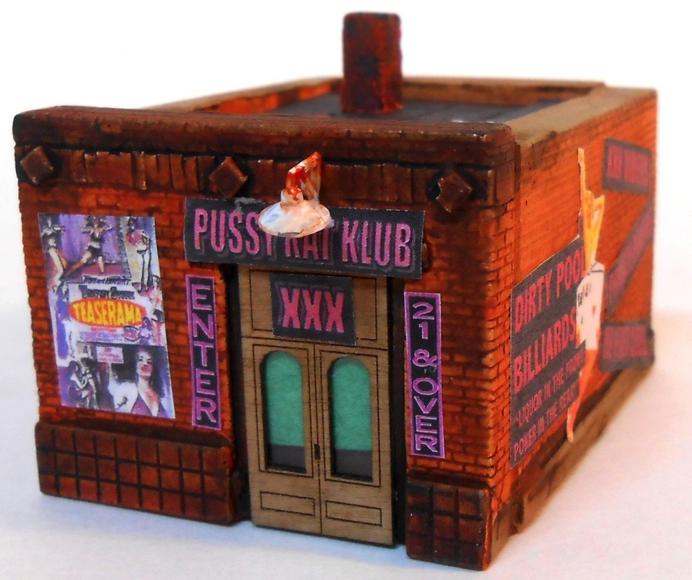 This is an alternative version of of "Addams 2" kit, with a new set of signs, custom waterslide decals from Dave's Decals. HO pilot model shown, slight details may vary. Special this week! Save $5 + we'll also send one of our "Pussy Cat Club kits at no charge! 2 kits for the price of 1! The best kits you can buy for 3 reasons!! One. Attention to detail & realism. All of the original pattern work is hand carved by an artisan for maximum realism. This allows Downtown Deco kits to include details you'll never find in other kits. Missing and chipped bricks, "ghost' staircases and walls, crumbling stucco and cracked and weathered concrete. If you can find it in real life you'll see it in a Downtown Deco kit! Two. Ease of construction. We try & keep the kits simple so you can get to the fun part (painting & weathering the buildings) in about 30 minutes. Our instructions are second to none, with complete, easy to understand instructions that walk you through each and every step along the way, from basic assembly to painting & weathering the model. Three. Customer service. Got a question about weathering your model? Give us a call. End up with a broken part somehow? We'll replace the parts for free. Paint your first hydrocal kit & you're unhappy with the way it came out? Drop us an email & we'll send you a second set of castings so that you can try again. Why do we do this? Because we want you to have fun with our kits and to be happy with your finished results. If you need anything at all touch base with us & we'll help you out. Our customer service is second to none. 100% positive feedback!