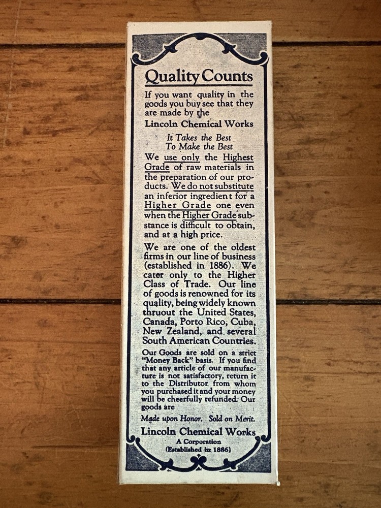 Dr Blumers Lincoln Chemical Vanilla Extract Box Only