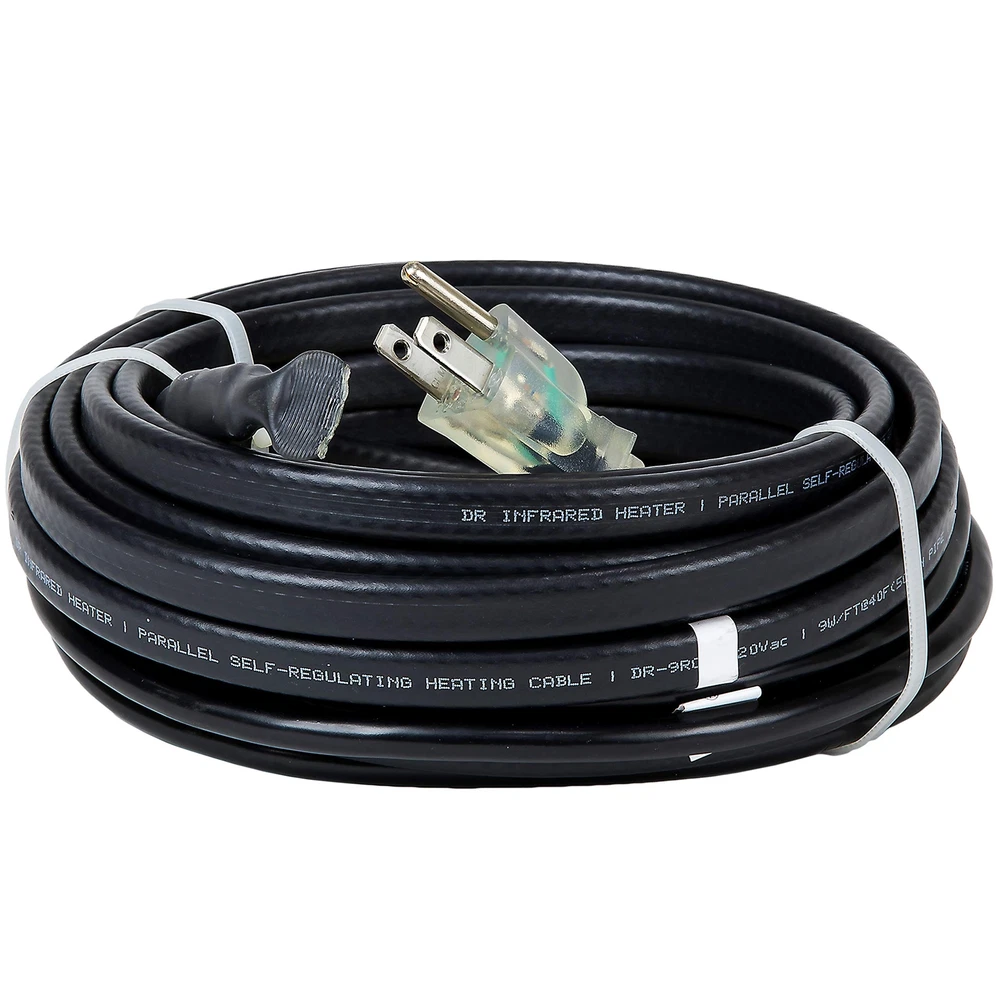 WATTS: 9W/ft @ 40 °F (5 0C) on pipe 12W/ft @ 32 °F (0 0C) on roof - in water Stay warm indoors during winter time. Dr Heater self-regulating heat cable will de-ice your roof every winter effectively and energy efficiently. No more dangerous icicles hanging off the roof, no more damaged gutters and downspouts by ice, and no more heavy snow piled up on the roof. Radiant roof and gutter heating and de-icing systems are recognized as extremely effective in preventing the problem caused by heavy snow and ice that can form on the roofs of buildings. Dr Heater’s self-regulating heat cable is suitable for roofs, gutters, and drain pipes and is capable of keeping your home or business safe from costly ice and water damage, frost erosion and dangerous falling ice. Dr Heater’s self-regulating roof and drain pipe heat cable is composed of rugged durable outer construction (Thermoplastic elastomer) to withstand winter’s harsh conditions. The self-regulating cable also features an irradiated conductive core that increases the heat output as the outside temperature falls and decreases the heat output as the temperature rises. This unique construction makes it durable, safe, and extremely energy efficient. The cable is ETL certified for the USA and Canada. DE-ICING FOR ROOF – 12W/ft at 32ºF(0ºC) These heating cables provide pipes, roof and gutter systems protection from damage due to freezing, and can be used in residential and commercial applications. Keep the water flowing in the winter. PIPE FREEZE PROTECTION – 9W/ft @ 40ºF (5ºC) Suitable for plastic or metal pipes, gutters and downspouts SELF-REGULATING – The cables automatically adjust heat output according to the ambient temperature conditions. Under cooler conditions the heat output increases, and as the temperature rises the output decreases to save on energy. HEAVY DUTY – Commercial-material that’s built to last and outperform other brands. GLASS ADHESIVE TAPE – High quality tape provided for pipe installation. *Sold separately