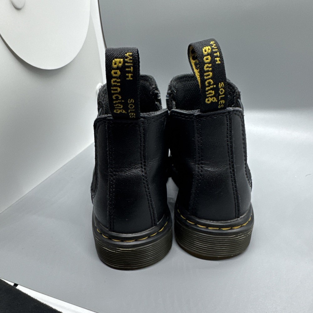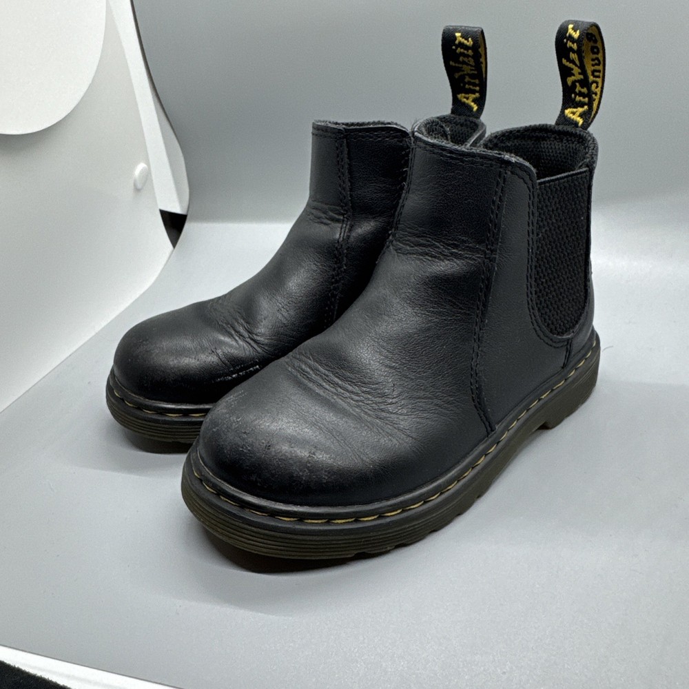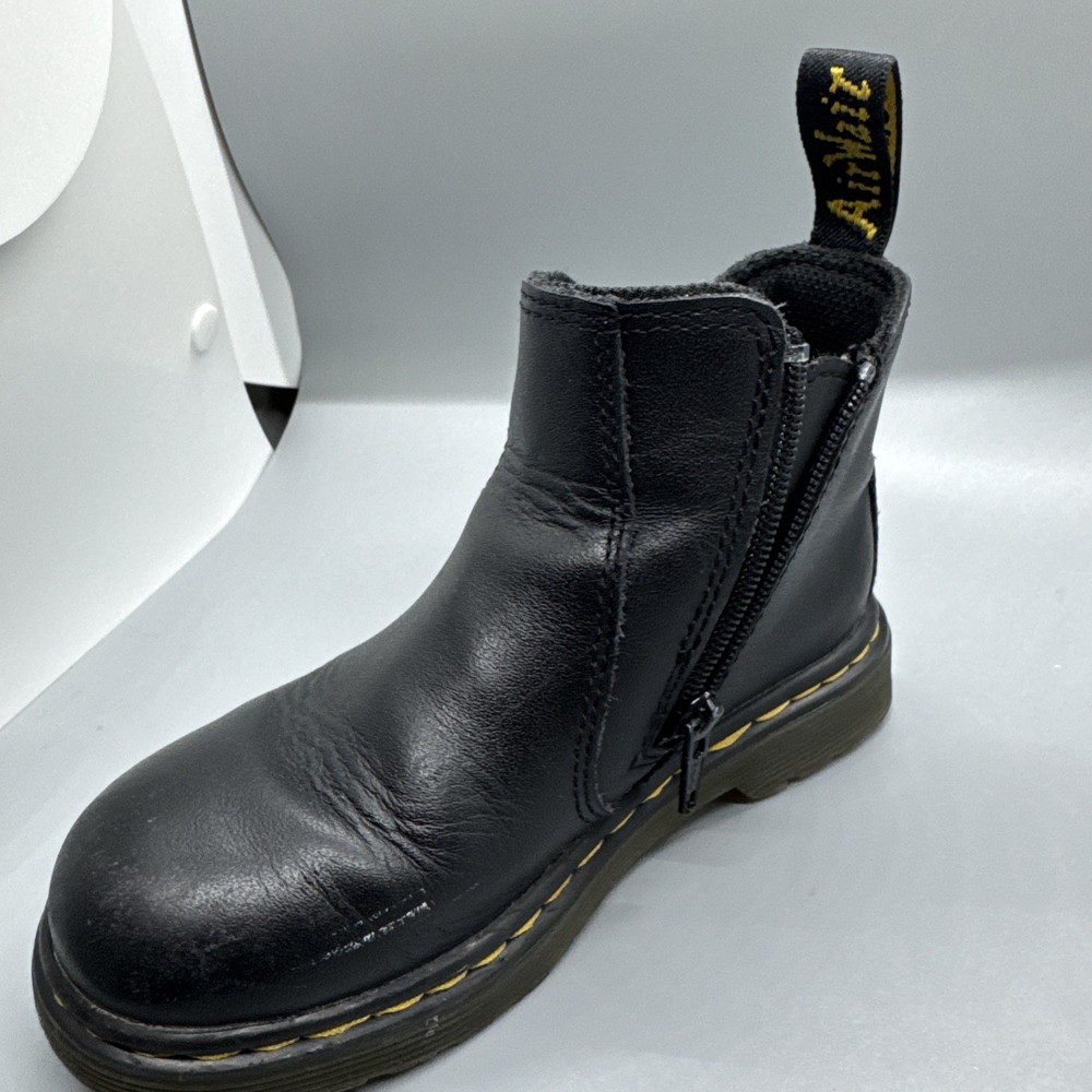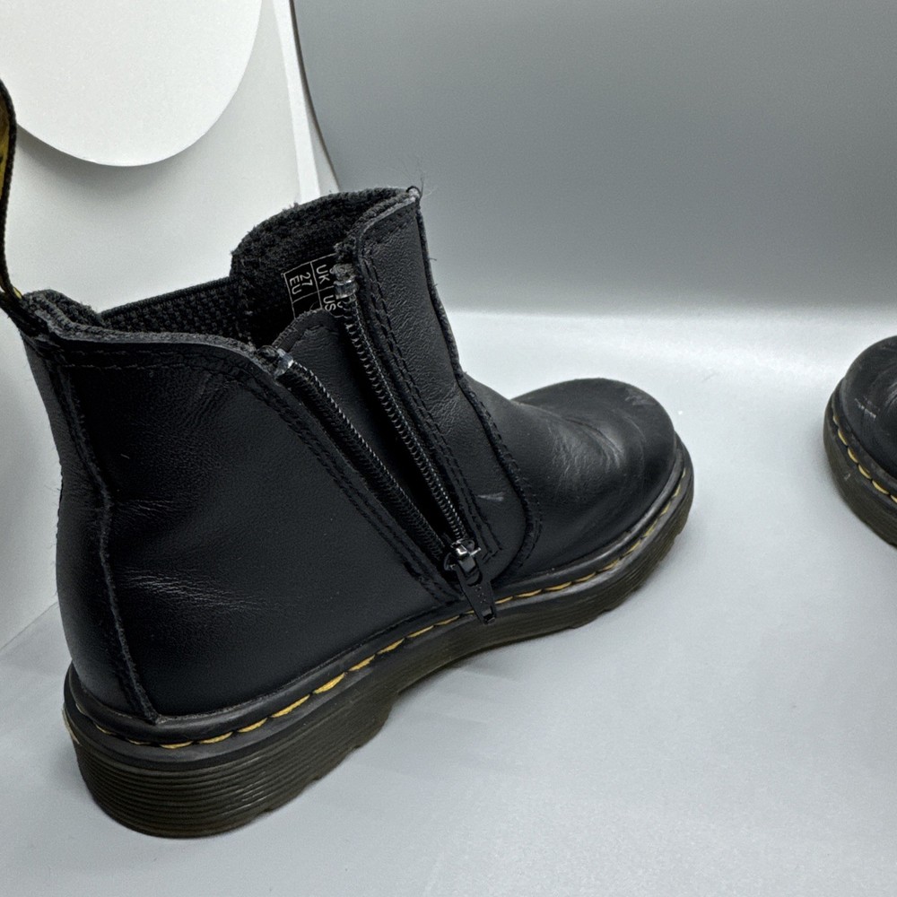 The Dr. Martens Junior 2976 Softy T Black Leather Chelsea Boots are a stylish and durable option for children. With an inside zip for easy wear, these size 10 boots are perfect for both boys and girls. The classic black color and Chelsea style make them versatile for both casual and dressy outfits. Known for their quality and long-lasting design, Dr. Martens boots are a reliable choice for any child's footwear collection.