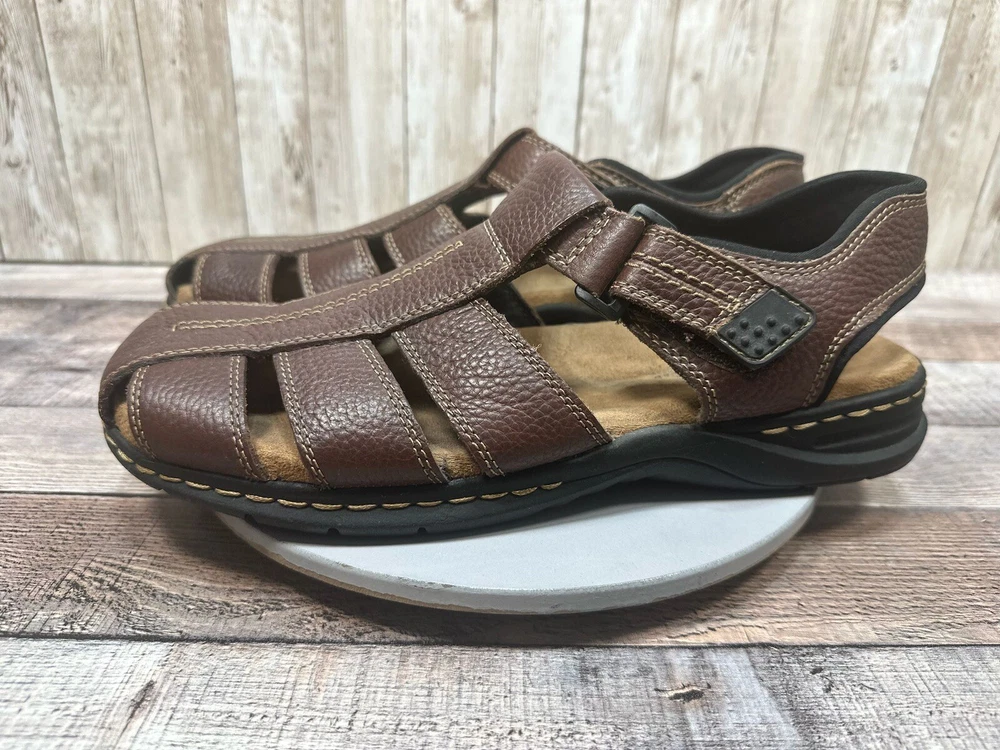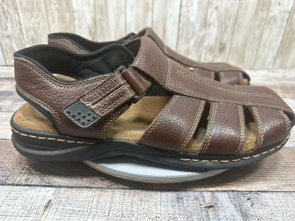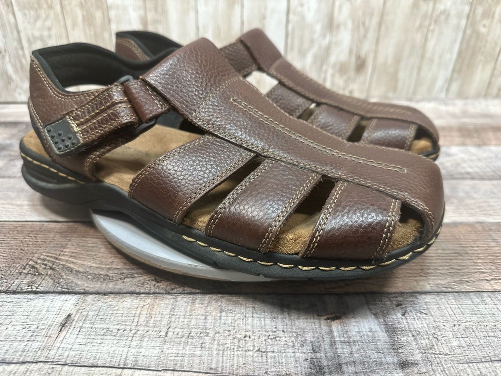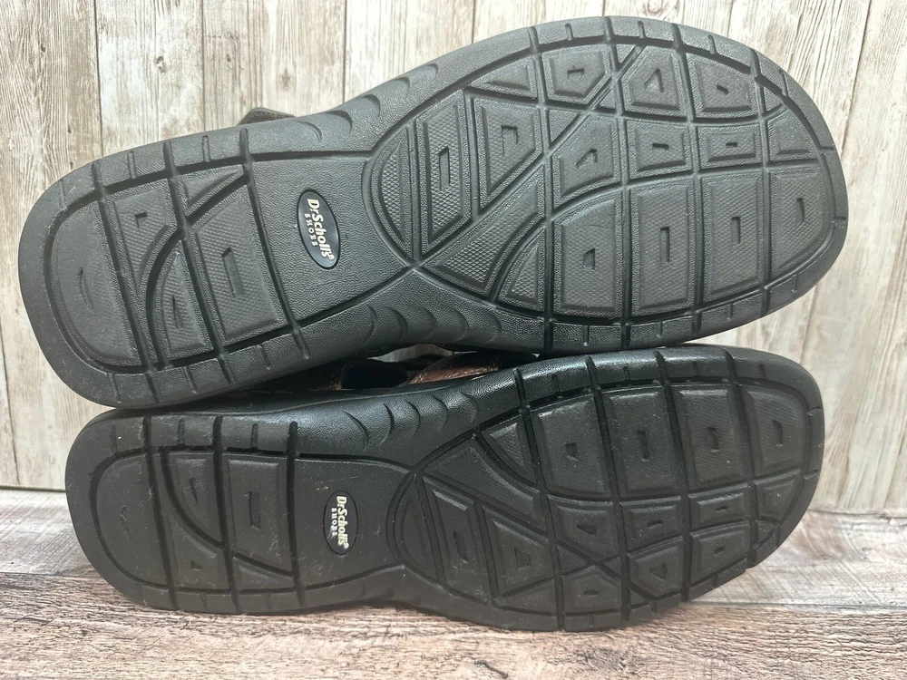 The Dr. Scholl's Gaston Men's Brown Leather Sandals offer a comfortable fit with memory foam insoles, making them perfect for casual occasions during the summer and spring seasons. Very good condition. Please check all the pictures.