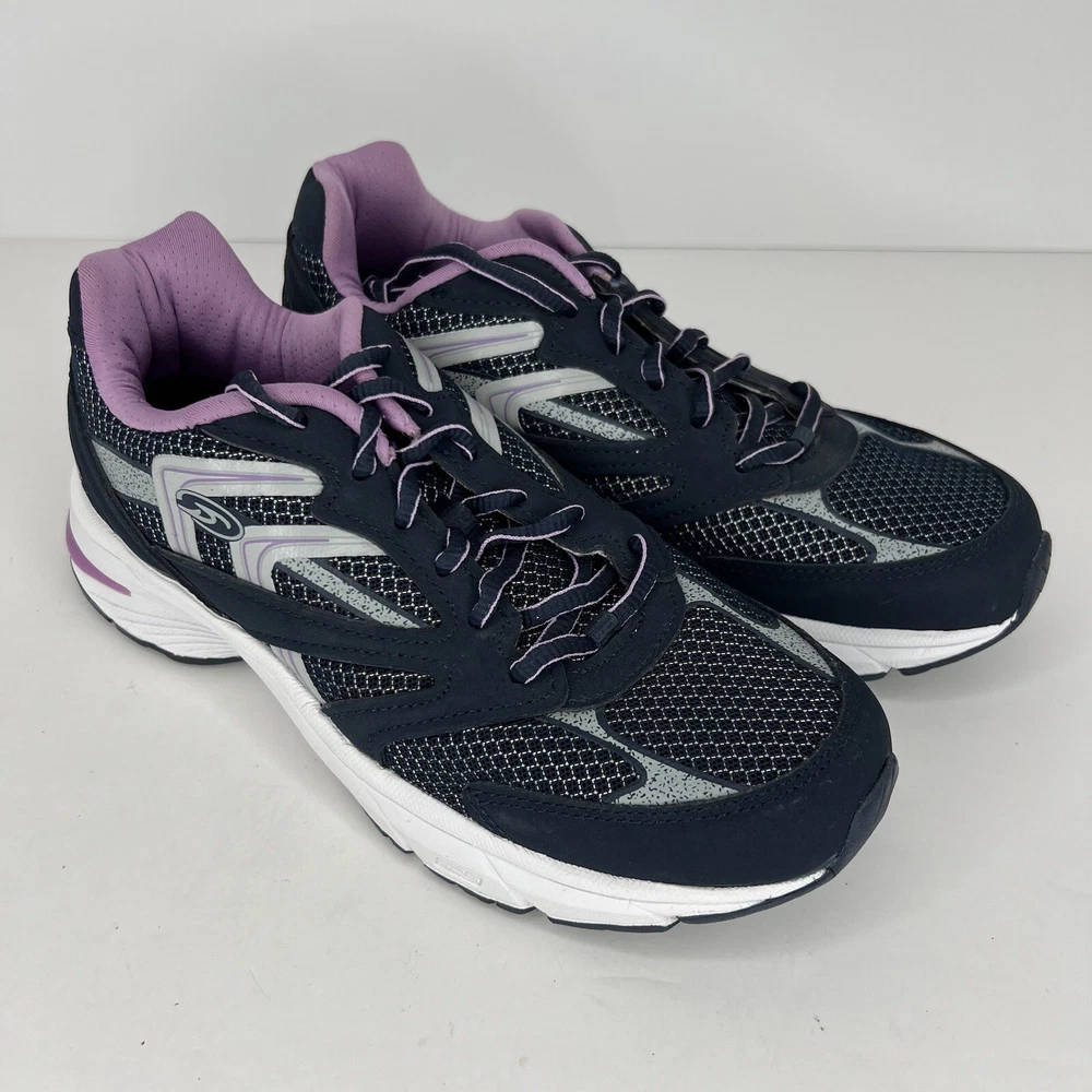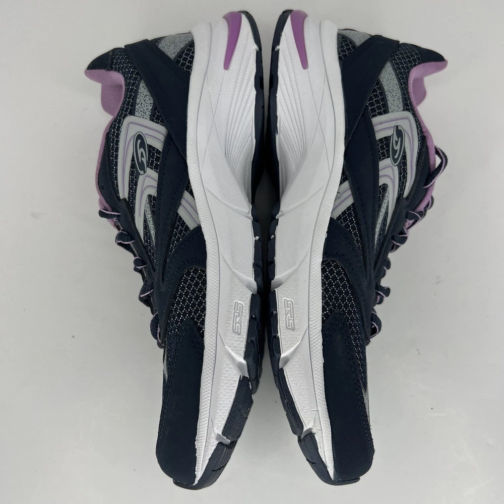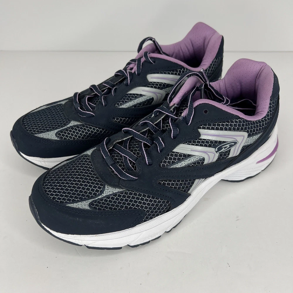 Elevate your activewear or casual look with these stylish navy and violet Dr. Scholl's sneakers . The low-top, lace-up shoe features a leather and mesh upper, with a geometric pattern that adds a unique touch to the design. The gel cushion insole provides comfortable support for walking, running, or jogging, making them the perfect choice for any season. These sneakers are perfect for women who want to stay on-trend while enjoying comfort and practicality. The rubber outsole ensures durability, while the fabric lining keeps feet cool and dry. The Dr. Scholls Gel Cushion Shoes product line is known for its quality and style and these shoes are no exception. Don't miss your chance to add a touch of violet to your shoe collection today. 100% CUSTOMER SATISFACTION IS OUR GOAL! Our items are always carefully examined for condition, measured if necessary, and photographed in a climate controlled and smoke-free environment. We make every attempt to accurately describe and clearly picture the items we have for sale. Please, ALWAYS view all of the photos. We value your business and our goal is your complete satisfaction. FAST SHIPPING All items are packaged with care and shipped out the same or next business day via USPS, FEDEX, or UPS with tracking numbers so you are always informed. RETURNS We offer a 30-day return policy. All items must be unused and unopened in the condition in which they were received, with original packaging, and all accessories included for return. REVIEWS - CUSTOMER SATISFACTION - COMMUNICATION We aim to make you happy. After you receive your shipment, please leave a positive review . If you have concerns or questions about your order, please contact us so we can resolve the issue. We will do our best to make you satisfied. THANK YOU FOR YOUR BUSINESS!