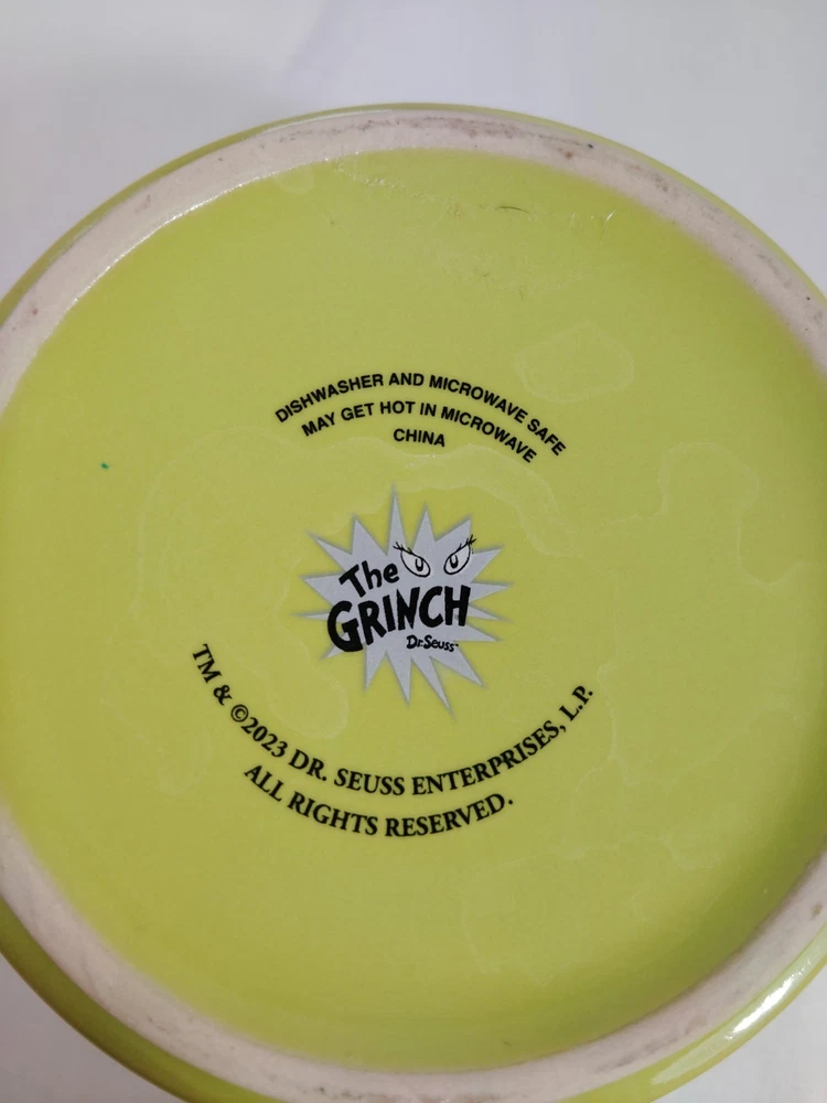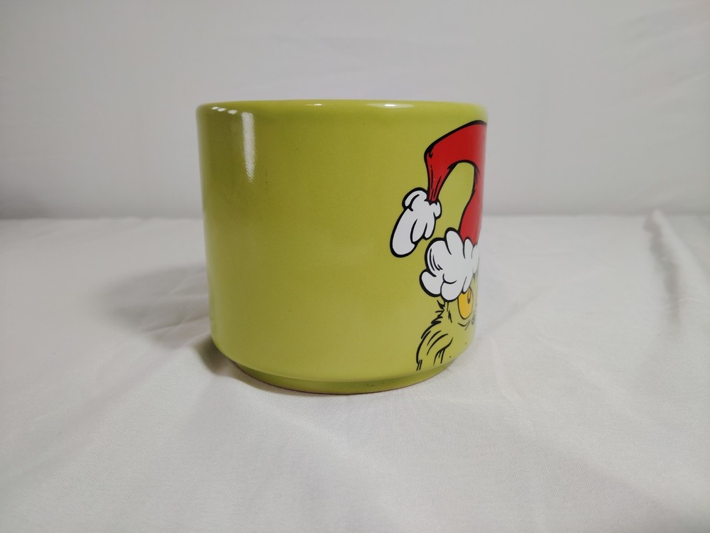 This Dr. Seuss THE GRINCH Green Ceramic Cup is a 10 oz coffee tea cocoa collectible mug featuring a novel round shape and decorated with the iconic character, The Grinch. The green ceramic mug is perfect for all occasions and is themed around Christmas and holiday cheer. With a modern style and practical features like being microwave and dishwasher safe, this novelty mug is ideal for fans of Dr. Seuss and lovers of a classic Christmas story. The single cup set is both collectible and functional, making it a great addition to any kitchen or dining room.