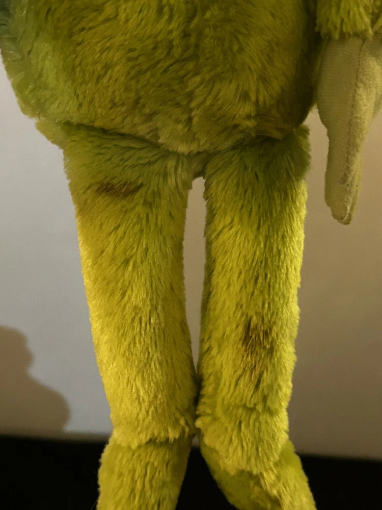 Get ready to steal the show with this 20-inch Dr. Seuss How The Grinch Stole Christmas plush toy. Perfect for the holiday season, this medium-sized stuffed animal is sure to bring joy to kids and adults alike. Featuring the iconic character family of Dr. Seuss, this plush toy is a must-have for any fan. Made by Kohl's Cares, this stuffed animal is of high quality and is perfect for cuddling or displaying. Whether you're looking for a gift for a loved one or just want to add to your collection, this plush toy is a great choice. Don't miss out on the chance to own this adorable and timeless piece. There is some minor staining on the legs as shown in the pictures.