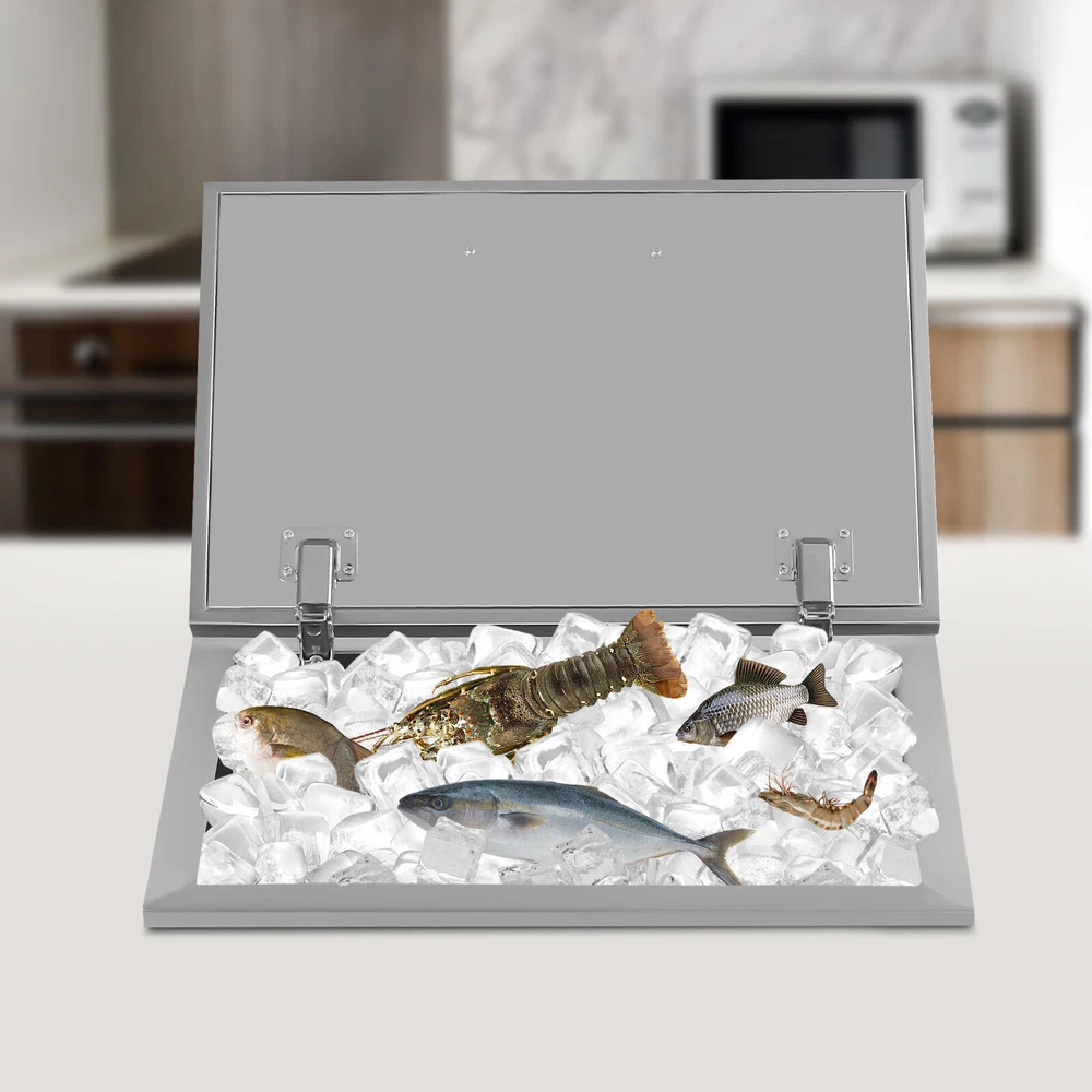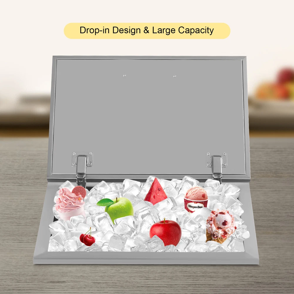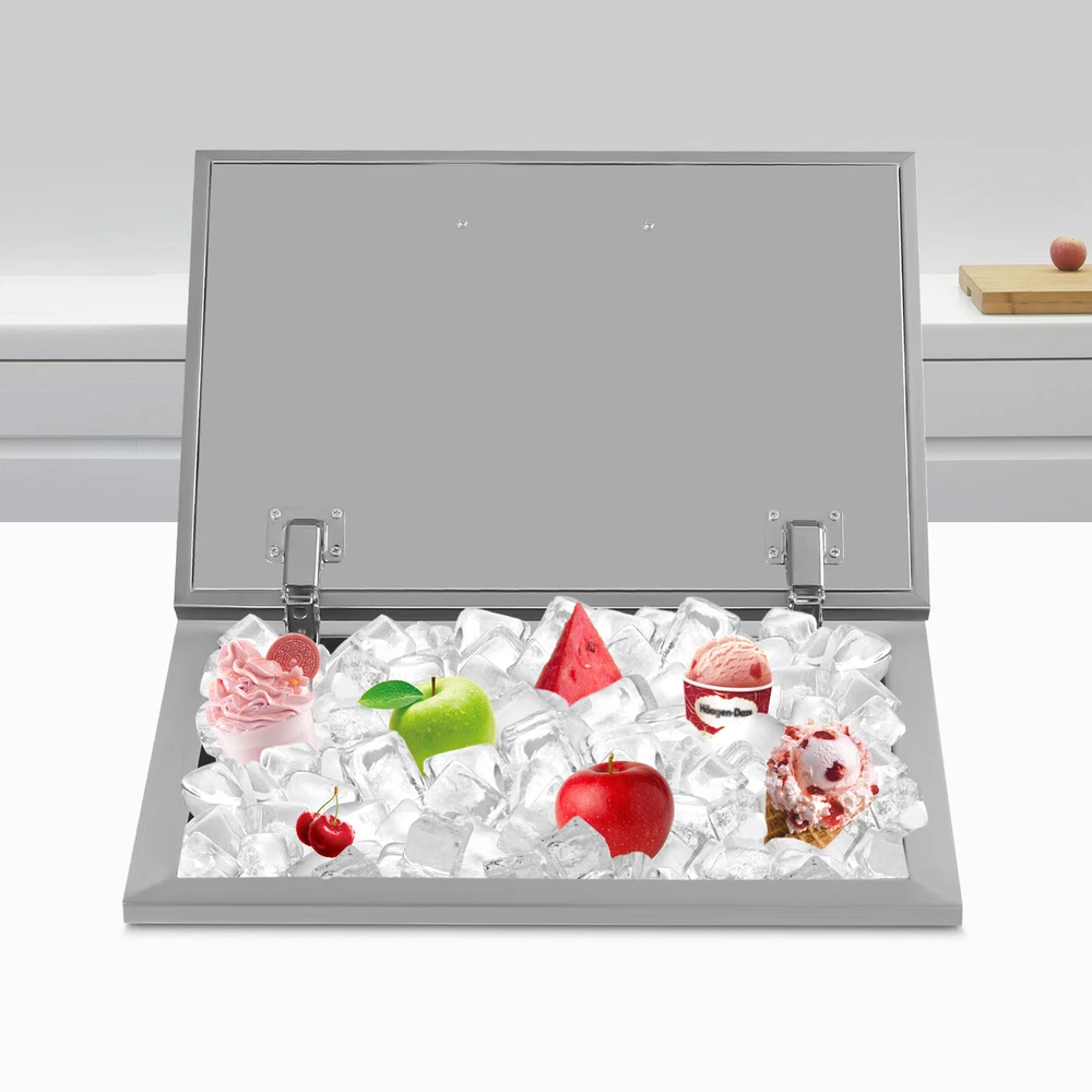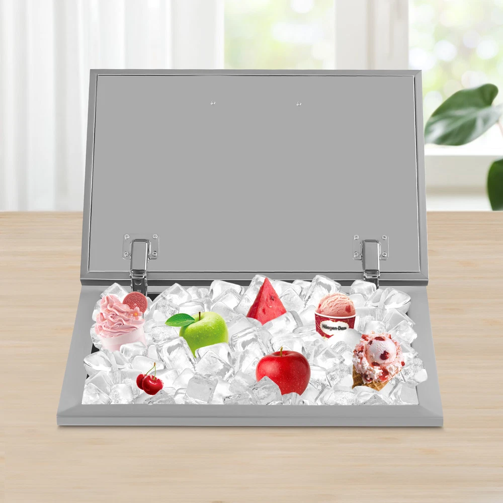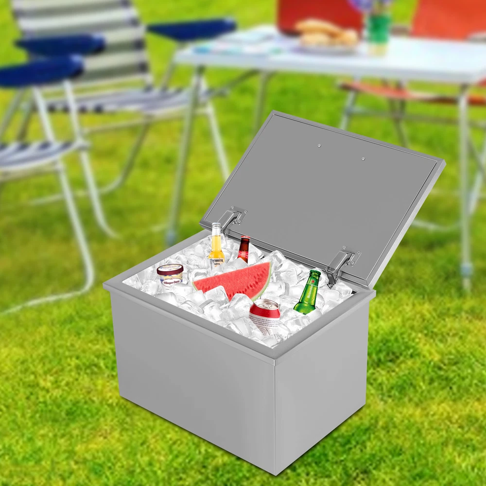 Details Ergonomic Handle: The handle on the lid is curved and ergonomic with a smooth surface, which makes it easy for you to open or close the lid and can prevent scratching your hands. Lid: The lid makes the product well sealed to allow for a better insulation effect and prevent the internal ice or drinks from being contaminated. Meanwhile, the two hinges make it easy for you to open and close the lid. Application It is widely used in dinner parties, parties, bars, kitchens, offices, etc. for keeping wine, beer, whiskey, beer, cocktails, vodka, juice, and frozen food fresh. Dr20"x14"x13" Drop In Ice Chest Ice Cooler Ice Bin Stainless Steel With Cover Description It's a great pleasure to have an iced drink in the hot summer. But traditionally electric refrigerator isn't available everywhere. This drop-in ice chest with a large capacity (30L= 31.7Qt) is your ideal choice for outdoor activities. Made of high-quality stainless steel, it is strong, durable, and not easy to rust. The excellent insulation performance can bring you cold drinks for a long time. It will be a great addition to your outdoor party. Key Features Premium Material: This product is made of food-grade 304 stainless steel, which is odorless, harmless, anti-rust, strong, durable, and not easy to deform. Excellent Performance: The double-walled design, built-in thickened foam, and lid can effectively prevent cold air from escaping and keep your ice solidified to keep your drinks cool for a long time. Large Capacity: The large capacity of 30L= 31.7Qt allows it to easily store and cool large quantities of ice, drinks, or frozen foods to meet your home and commercial needs. Saving Space: With a drop-in design, it will not take up too much space in the kitchen, especially suitable for small kitchens. Quick Drainage: With a drain hole at the bottom, a drain plug, and an extended water drainage hose, it can quickly drain water. As a result, it also can be used as an outdoor sink and is suitable for an outdoor kitchen, party, resort, bar, etc. Easy Assembly: This product is simple in structure and complete in the package. You only need a few simple steps to install it, which is very time-saving and labor-saving. Outdoor Available: You can take it to outdoor places, bringing cold drinks to your party without the need for an electric refrigerator to create happy memories. Easy to Clean: The stainless steel surface is smooth and flat without grooves to hide dirt, making it easy to clean. You can directly rinse it with water and dry it. Customer Service: We aim to provide quality products and services. If you have any problems, please feel free to contact us. We will reply and solve the problem for you as soon as possible. Details Ergonomic Handle: The handle on the lid is curved and ergonomic with a smooth surface, which makes it easy for you to open or close the lid and can prevent scratching your hands. Lid: The lid makes the product well sealed to allow for a better insulation effect and prevent the internal ice or drinks from being contaminated. Meanwhile, the two hinges make it easy for you to open and close the lid. Application It is widely used in dinner parties, parties, bars, kitchens, offices, etc. for keeping wine, beer, whiskey, beer, cocktails, vodka, juice, and frozen food fresh. Specifications Color: Silver Material: 304 Stainless Steel Shape: Rectangular Capacity: 30L= 31.7Qt Insulation Temperature Range: -5℃-91℃/23℉-194℉ Foam Insulation Layer Thickness: 2cm/0.78in Net Weight: 9kg/19.84lbs Gross Weight: 10kg/22.1lbs Package Size: 55*40*39cm/21.7*15.7*15.4inch Product Size: 50.5*35.5*33cm/20*14*13inch Water Drainage Hose Length: 1m/3.2ft Package Included 1* Drop-in Ice Chest 1* Lid 1* Handle 1* Water Drainage Hose 1* Filter Basket Other Accessories for Assembly Notes Please allow the slight color difference caused by the shooting light and 1-3cm error due to manual measurement, and make sure you do not mind before you order. Payment Delivery details Terms of sales About us Contact us Payment We accept ebay payment 。 Fees such as import duties, taxes are not included in the item price or shipping costs. These charges are the buyer's responsibility. Delivery details Shipping: 2-9 working days to: USA Terms of sales We maintain high standards of excellence and strive for hundred percent customer satisfaction. Feedback is very important to us. We hope that you contact us immediately before you give neutral or negative feedback, so that we can address your concerns. It is impossible to address issues if we do not know about them! About us Your satis faction is our ultimate goal. We work hard to earn your trust and future business. Our certified technicians have tested each item before shipping. The unit comes with 1 year limited warranty on all manufacturing defects. a) If you receive a defective item, you may return it or ask for a discount. Please contact us within 14 days after you receive the package. b) What you returned must be intact and in its original packaging as re? u. Customer is responsible for shipping costs of the returned item. c) We will cover the cost of shipping back t with the shipping rate indicated in the registration page. We will send you a new unit or refund the full payment you paid. Thank you. Contact us Business Hour Business Hour: Monday To Friday: 8:30 AM to 5:00 PM (Beijing China time) Due to time zones, our reply to your questions may not be immediately. But within above working time, we will reply your email within 24 hours. If it's non-workdays, please kindly be patient and wait till Monday. Please contact us with ebay message. Please feel free to contact us if you have any questions. Monday To Friday: 8:30 AM to 5:00 PM (Beijing China time) Due to time zones, our reply to your questions may not be immediately. But within above working time, we will reply your email within 24 hours. If it's non-workdays, please kindly be patient and wait till Monday. Please contact us with ebay m