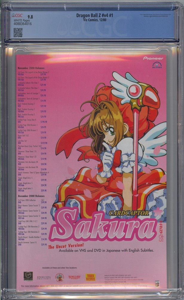 This listing is for Dragon Ball Z v4 #1 CGC 9.8 . You will receive exactly what is pictured in the listing. Items will be shipped extremely carefully to insure they arrive in excellent condition. All S/H for this auction varies. I do combine items for shipping. Insurance is included with all shipping. For International buyers please note any custom fees charged by your country are your responsibility. I will always try to accommodate any special requests. If there are ever any problems regarding your purchase please contact me prior to putting in claims, leaving negative feedback, or giving out low ratings. I aim for 5 out of 5 stars all the time and will always do my best to fix any issues. I always make sure my customers are happy!!!! I accept Paypal. I ship fast and secure, just check my feedback. Please feel free to E-mail me with any questions or if you need larger scans. Please check out my other auctions!! Happy Bidding. Good Luck.