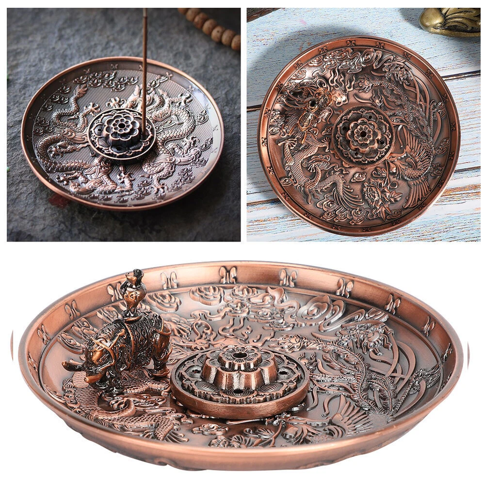 Feature: 1. Made of high quality zinc alloy material, which is corrosion‑resistant and durable 2. Possess clear carving and glossy lines, the appearance is designed in purple bronze color with dragon and phoenix pattern 3. Equipped with two removable incense holders with holes of different diameters, can accommodate a variety of incense types 4. Can be used as decorations, suitable for various places such as living rooms, temples, offices, hotels, teahouses, yoga gym, etc. 5. This unique antique style incense holder will add elegant atmosphere for your home Specification: Item Type: Incense Holder Category: Incense burner Pendulum Form: Pendulum Process: Pressure casting Size of Dragon Phoenix Plate: (manual measurement for reference) Diameter: Approx. 10.8cm / 4.3in, height: Approx. 1.8cm / 0.7in Size of Incense Holder: Diameter: Approx. 3.4cm / 1.3in, height: Approx. 1cm / 0.4in Size of Elephant Incense Holder: Length: Approx. 3cm / 1.2in, height: Approx. 2.8cm / 1.1in Package List: 1 x Dragon Phoenix Plate 1 x Incense Holder 1 x Elephant Incense Holder