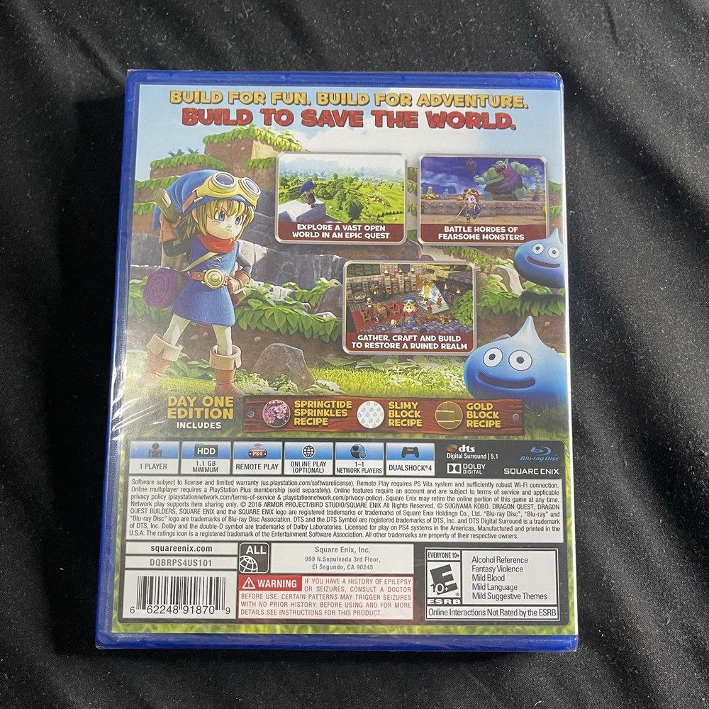 Absolutely love this game! It's the perfect blend of creative building and classic Dragon Quest charm. The day one edition is a fantastic find, and it arrived in great condition. Highly recommend for any PS4 owner!