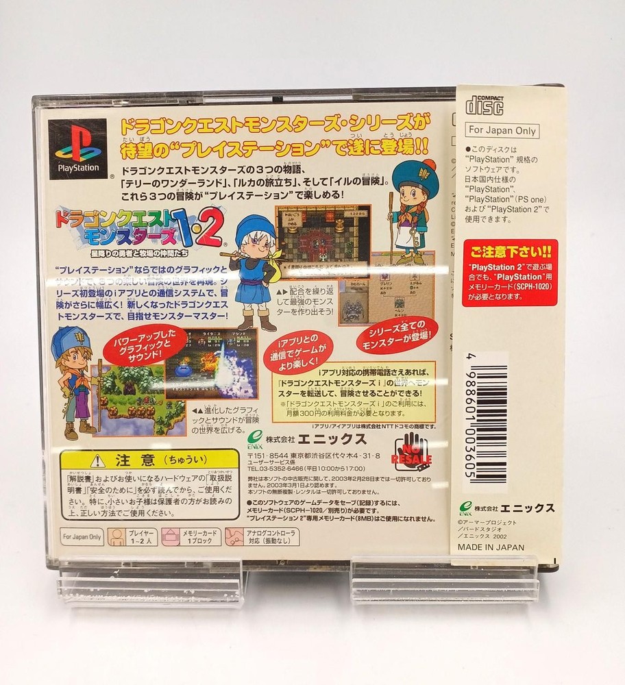 Item Title Enix Dragon Quest Monsters 1 2 Payment Supports managed payments Please pay within 5 days after auction is finished. About Us We are located in Japan. It's our pleasure to make you happy by proposing our recommend item. If you have any questions or request about items, please feel free to ask us. International Buyers - Please Note: -Import duties, taxes, and charges are not included in the item price or shipping charges. These charges are the buyer's responsibility. -Please check with your country's customs office to determine what these additional costs will be prior to bidding/buying. -These charges are normally collected by the delivering freight (shipping) company or when you pick the item up - do not confuse them for additional shipping charges. -We do not mark merchandise values below value or mark items as - gifts - The US and International government regulations prohibit such behavior. Thank you for your understanding.
