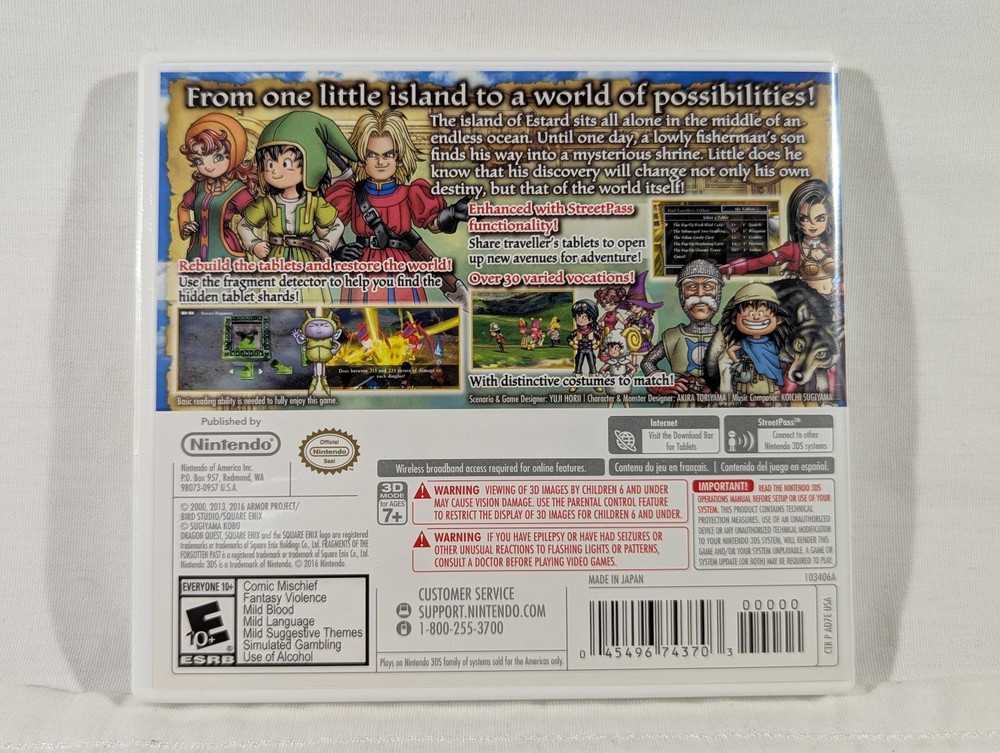 Dragon Quest VII: Fragments of the Forgotten Past 7 Nintendo 3DS 2016 Tested Remember, cartridges can be finicky. Make sure to blow, adjust, reset and re-seat multiple times if the game does not start. CONDITION Overall excellent condition. No damage to cart or inserts. Very minor marks on case. Tested and works as expected. Look at the pictures closely as this is the exact item you're purchasing AND IS AS IS. Please ask any questions before buying. Disclaimer ** Please note: We put up a varied collection of items and are not experts in every area, so descriptions are our best guess as to what something is. We try to research each item to the best of our ability, but it is the buyer's responsibility to know what they are buying. ** Payments Payment is due the day of the sale or close of auction. Shipping We use eBay's calculated shipping to determine the cost based on the size & weight of the box, along with the shipping destination. Occasionally eBay's calculated shipping may over-calculate. We refund any overages that may occur. Click here to view our other auctions and items for sale. We ship to the U.S. and internationally through the eBay International Shipping program.