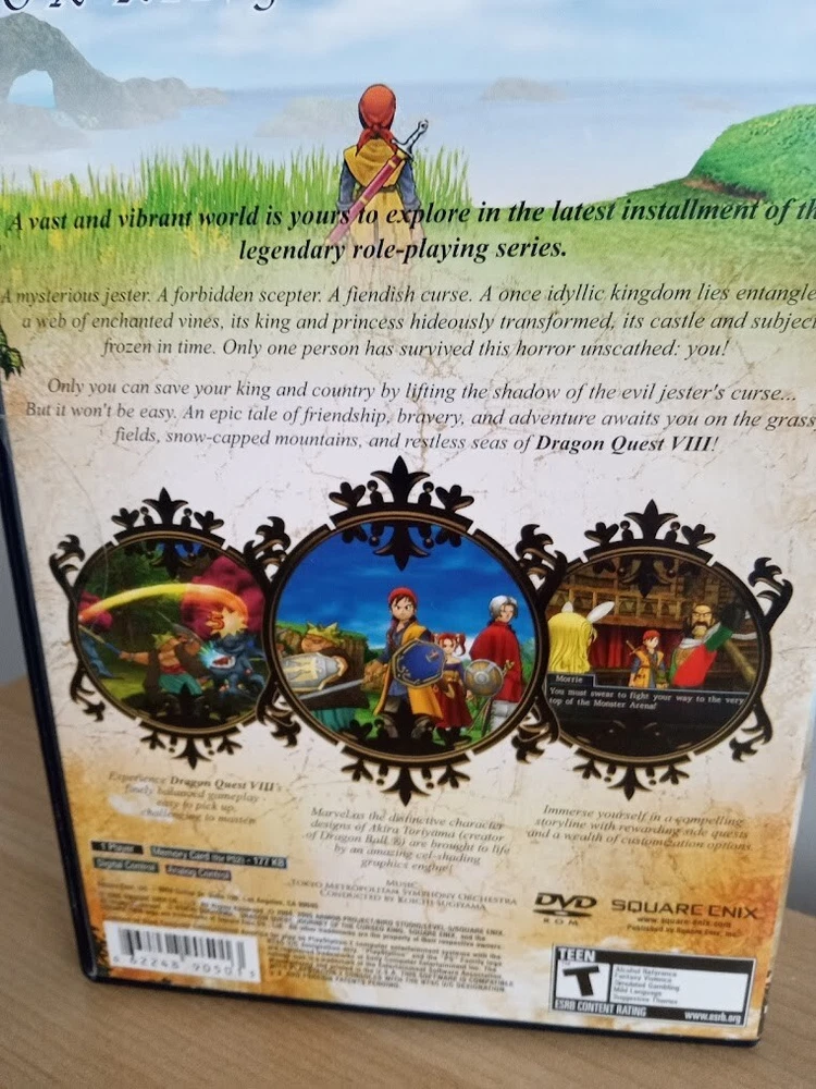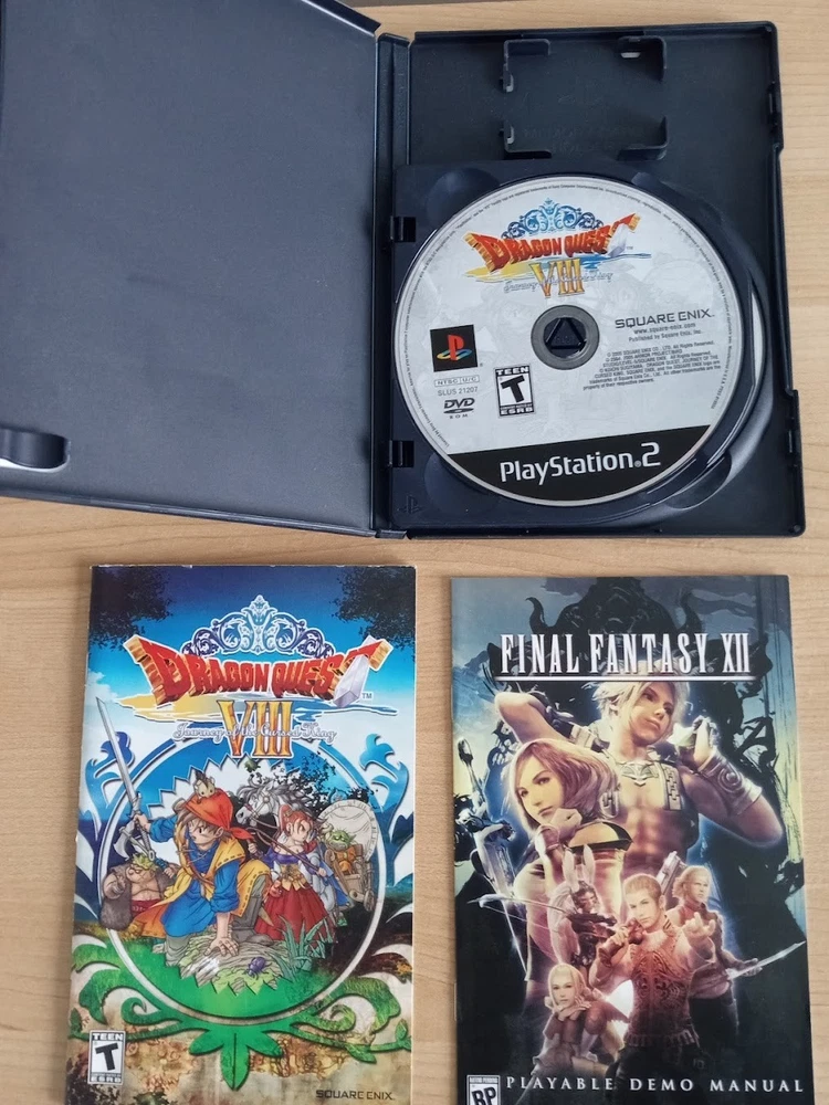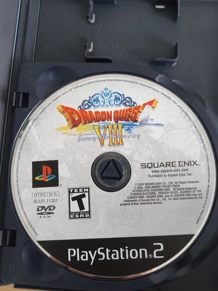 Embark on an epic adventure with "Dragon Quest VIII" for the Sony PlayStation 2. Published by Square Enix in 2005, this instalment in the revered Dragon Quest series offers a immersive role-playing experience. Rated T for Teen, it's designed to captivate and challenge players with its intricate storytelling and gameplay. Complete with its original packaging and manual, this black label edition has been tested to ensure quality. Note that the coveted Healer plush is not included. Dive into the world of Dragon Quest 8, where demo features add to the allure, and enjoy the classic NTSC-U/C region code for compatibility with North American consoles. If you can't live without the healer plush message me, and I'll throw up another ad for it. No plush included. Shipped with care and haste.