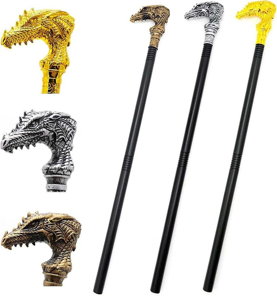 Dragon Staff Walking Stick Cane-Costume Medium, Gold,silver and Bronze Product Details Item Package Dimensions L x W x H: 15.07 x 6.14 x 2.52 inches Package Weight: 0.24 Kilograms Item Weight: 0.18 Kilograms Brand Name: Pemalin Model Name: 3pcs Dragon Scepter (Gold,Silver,Bronze) Color: Gold,silver and Bronze Dragon Material: Plastic Suggested Users: Unisex Number of Items: 3 Manufacturer: Pemalin Included Components: Scepter Size: Medium 【Dress-up Dragon Scepter】: This package includes 3 dragon scepter(1 gold, 1 silver, 1 bronze), Great for dressing up as queens, kings, wizards, witches and more. 【Idea Gift】: This dragon scepter perfect for Halloween decorations, costume parties, prend play, role-playing events and more, It 's a great gift to use for both kids and adults. 【Safe and Durable Materials】: Dragon scepter made of high-quality ABS material, light weight but strong and durable, the head of the dragon is bright gold, silver or bronze.(Tips: Walking stick is not made to support weight)