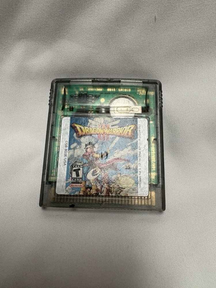 The product is a cartridge of Dragon Warrior 3 for the Nintendo Game Boy Color. It has been tested, cleaned, and verified as authentic OEM. The region code is NTSC-U/C (US/Canada), and the game is rated T-Teen. Published by Square Enix, this role-playing game is part of the Dragon Quest/Warrior Series and was made in Japan. This classic game offers an engaging gameplay experience for fans of the RPG genre on the GBA platform.