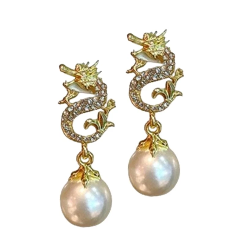 1. a perfect gift or a special treat for yourself! The dragon-inspired design paired with delicate pearls gives a luxurious yet modern vibe. Lightweight and comfortable, they stay secure all day without irritation. The craftsmanship is stunning—every detail shines, making them a standout piece. Whether dressing up or keeping it casual, these earrings add a touch of elegance and cultural charm. Love how they blend tradition with trendy style!