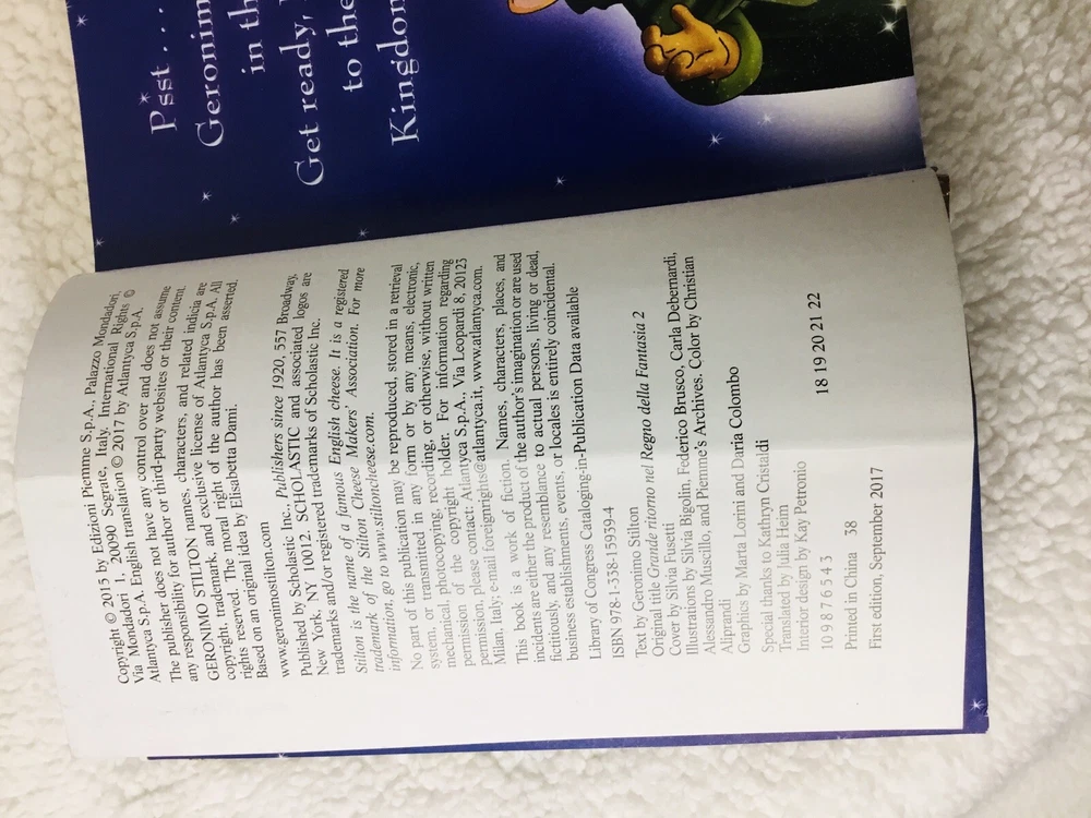 gtin13:9781338159394Book Title:Dragon of Fortune: an Epic Kingdom of Fantasy Adventure (Geronimo Stilton and the Kingdom of Fantasy: Special Edition #2)Item Weight:30.5 OzTopic:Animals / Dragons, Unicorns & Mythical, Fantasy & Magic, Humorous Stories, Animals / Mice, Hamsters, Guinea Pigs, Etc., Action & Adventure / General, General, Animals / BirdsGenre:Juvenile FictionPublication Year:2017Book Series:Geronimo Stilton and the Kingdom of Fantasy Ser.Item Height:1.4 inNumber of Pages:592 PagesPublisher:Scholastic, IncorporatedItem Width:5.4 inLanguage:EnglishItem Length:7.8 inIllustrator:YesFormat:HardcoverISBN:9781338159394Author:Geronimo Stilton