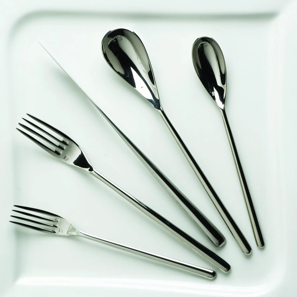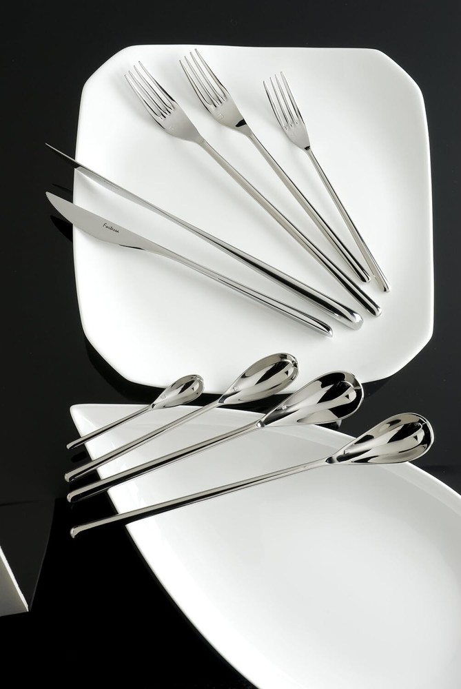 Dragonfly 18/10 Stainless Steel 20-Piece Flatware Set, Service for 4 20 piece set includes 4 each: table fork, salad/dessert fork, table knife, dessert/soup spoon, coffee/tea spoon; features heft, weight and balance 18/10 stainless steel: greater resistance to stains and rust, superior shine; polished handles, edges and fork tines for long wearing use Dragonfly pattern: modern, contemporary; formal or casual settings; long to extra long narrow rounded handles; scooped shaped spoons; lighter weight 360Degree design - design appears on front and back on every piece; polished fork tines; finely serrated knife blade and solid handles knives Dishwasher safe; product and/or mark on each piece , Inc. is a leading designer, developer and marketer of quality tableware for the high-end commercial foodservice market globally, as well as for the luxury consumer market. The company was founded in 1993 as the Great American Trading Company, Inc., focusing from the very start on quality dinnerware for culinary professionals and for the home. In 1997, the company expanded its offerings to flatware, glassware and tabletop accessories, becoming a "total table" operation and pioneered the concept of specialty dinnerware for the commercial foodservice market with a "Cuisine Collection" of square, rectangular and oval shapes. is an integrated designer, developer and marketer of tabletop goods and accessories. products and products under the banner include Dinnerware, the Accents collection, Metal ware, Schott Zwiesel Crystal Glass and Design and Value. brings a passion for design and exacting standards of performance to the manufacturing of its metal ware. We specialize in heavy gauge 18/10 stainless steel flatware that features heft, balance in the hand and pleasing design. 18/10 stainless steel offers greater resistance to stains and rust and a superior shine. flatware features 360Degree design in every piece: the design carries from the front to the back.